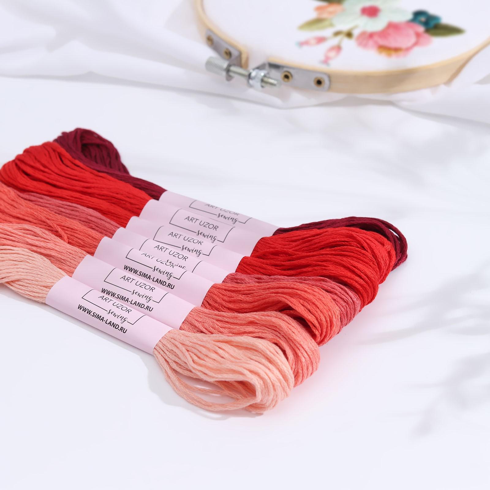 Набор ниток мулине, 7 шт по 8 м, красные оттенки