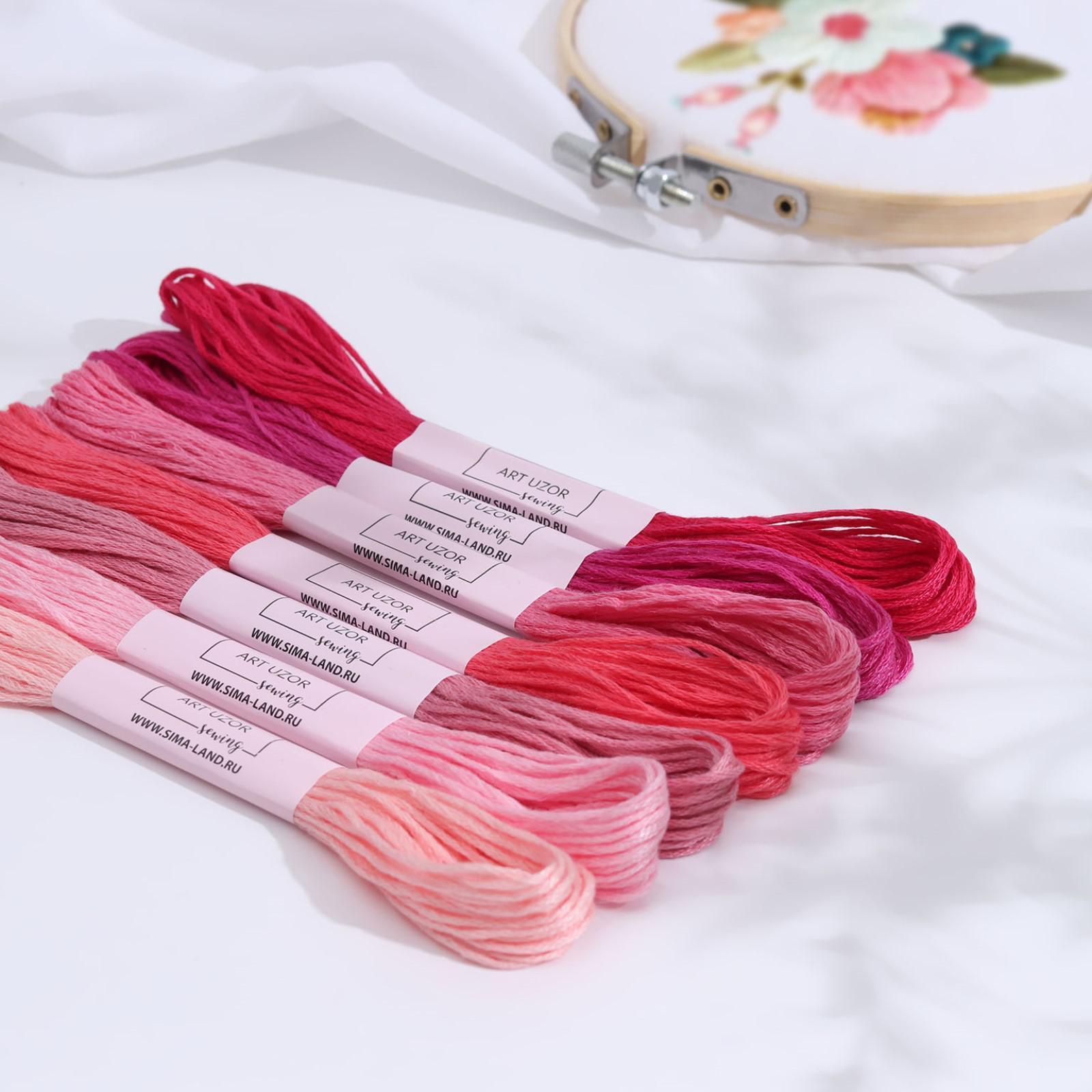 Набор ниток мулине, 7 шт по 8 м, розовые оттенки