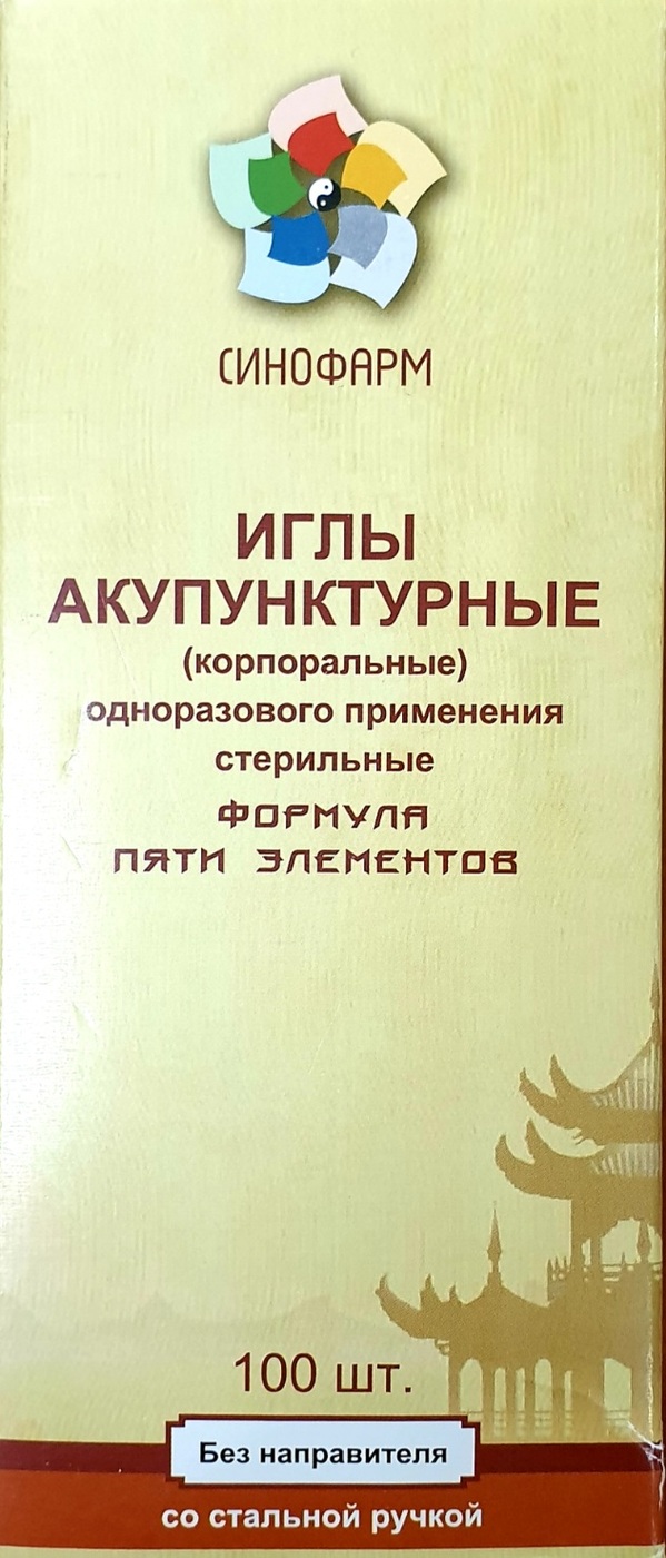 Игла акупунктурная 0.30х40 СИНОФАРМ - ФОРМУЛА ПЯТИ ЭЛЕМЕНТОВ / 100 шт. / без направителя