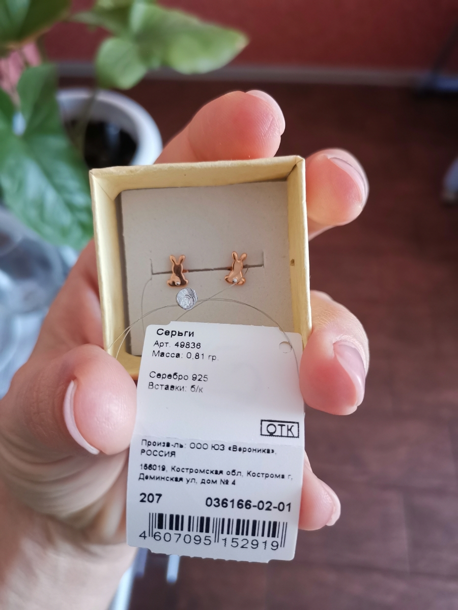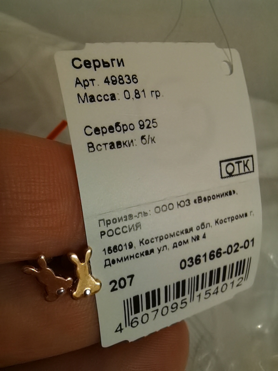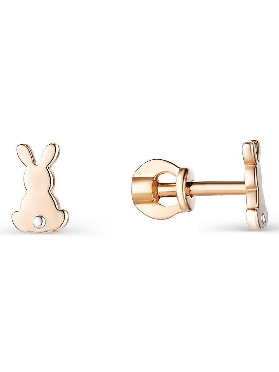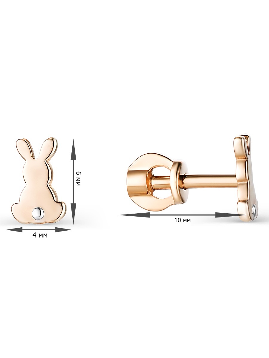 Skazka Natali Romanovoi Серьги пусеты /гвоздики/ детские/серебро 925 проба/покрытие красная позолота