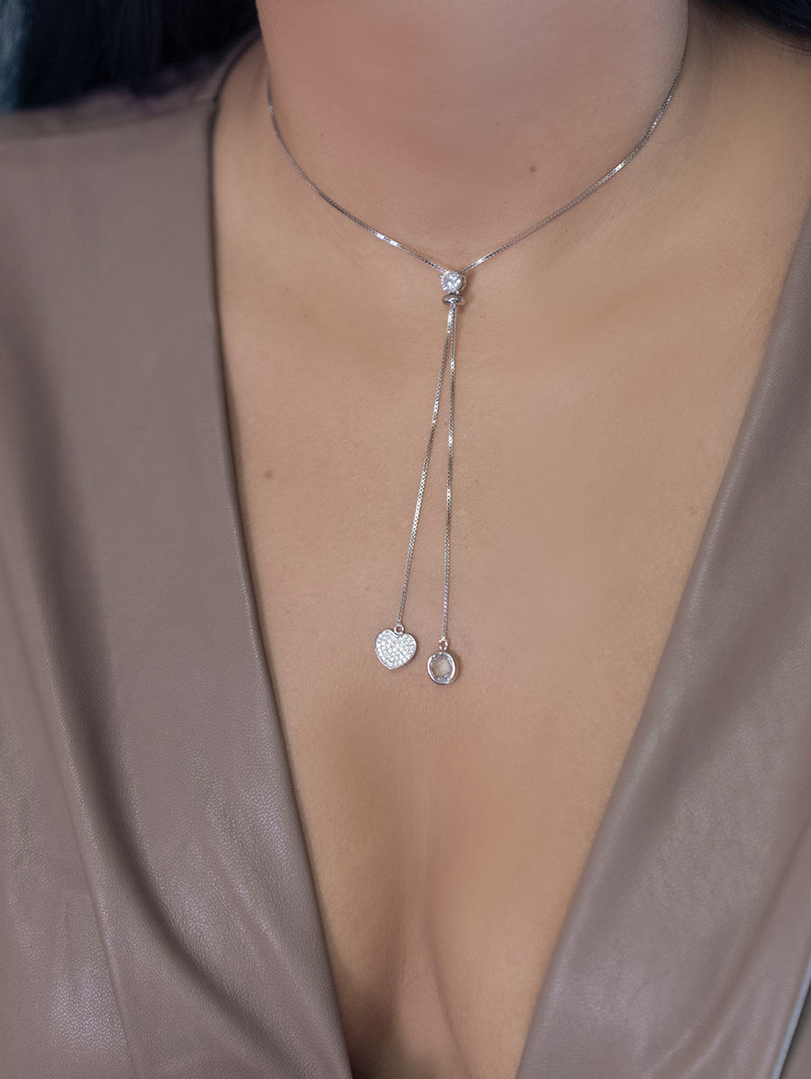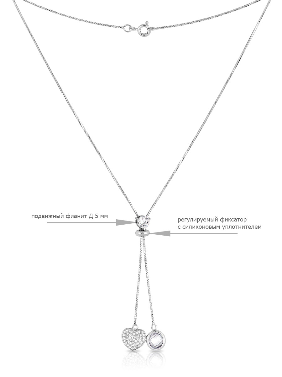 Skazka Natali Romanovoi Колье с фианитами/регулируемый замок/серебро 925 проба/покрытие родий
