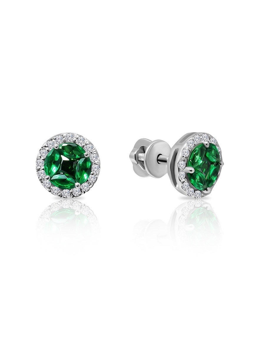 Skazka Natali Romanovoi Серьги пусеты/гвоздики с фианитами/серебро 925 проба/покрытие родий