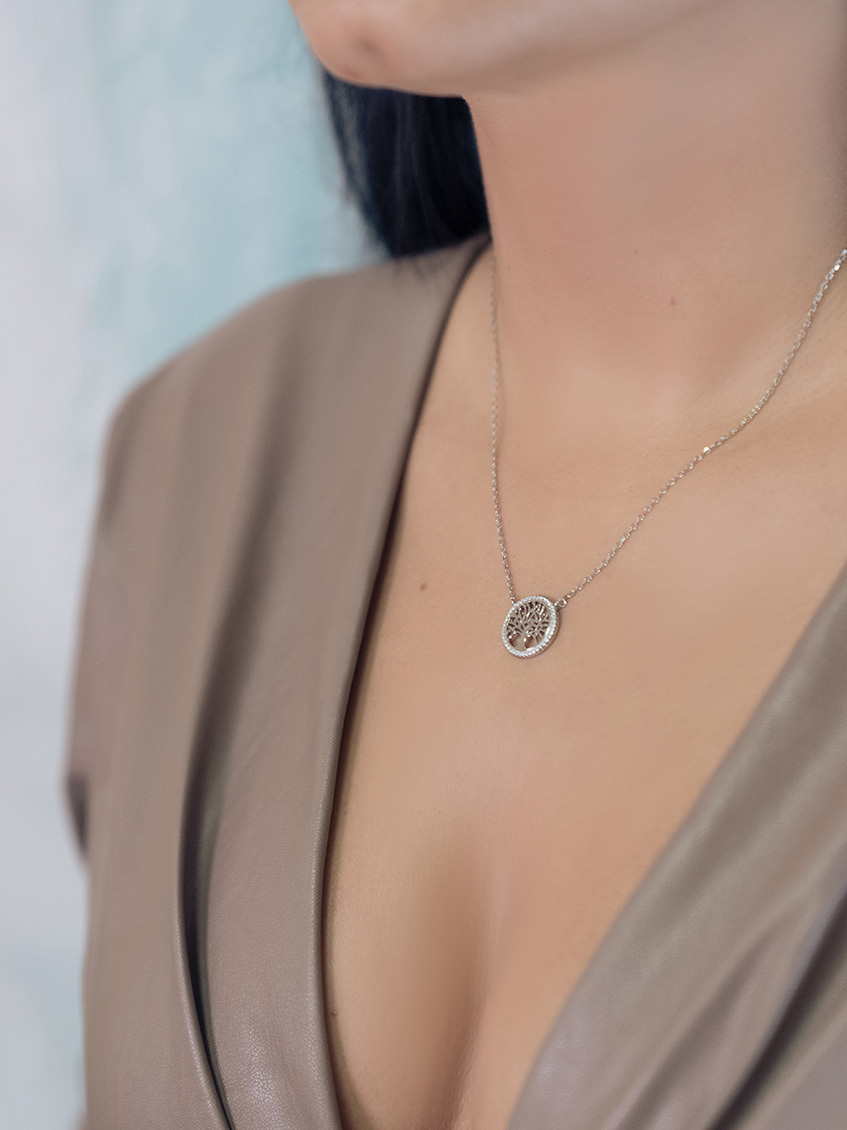 Skazka Natali Romanovoi Колье с подвеской Древо/вставка фианиты/серебро 925 проба/покрытие родий