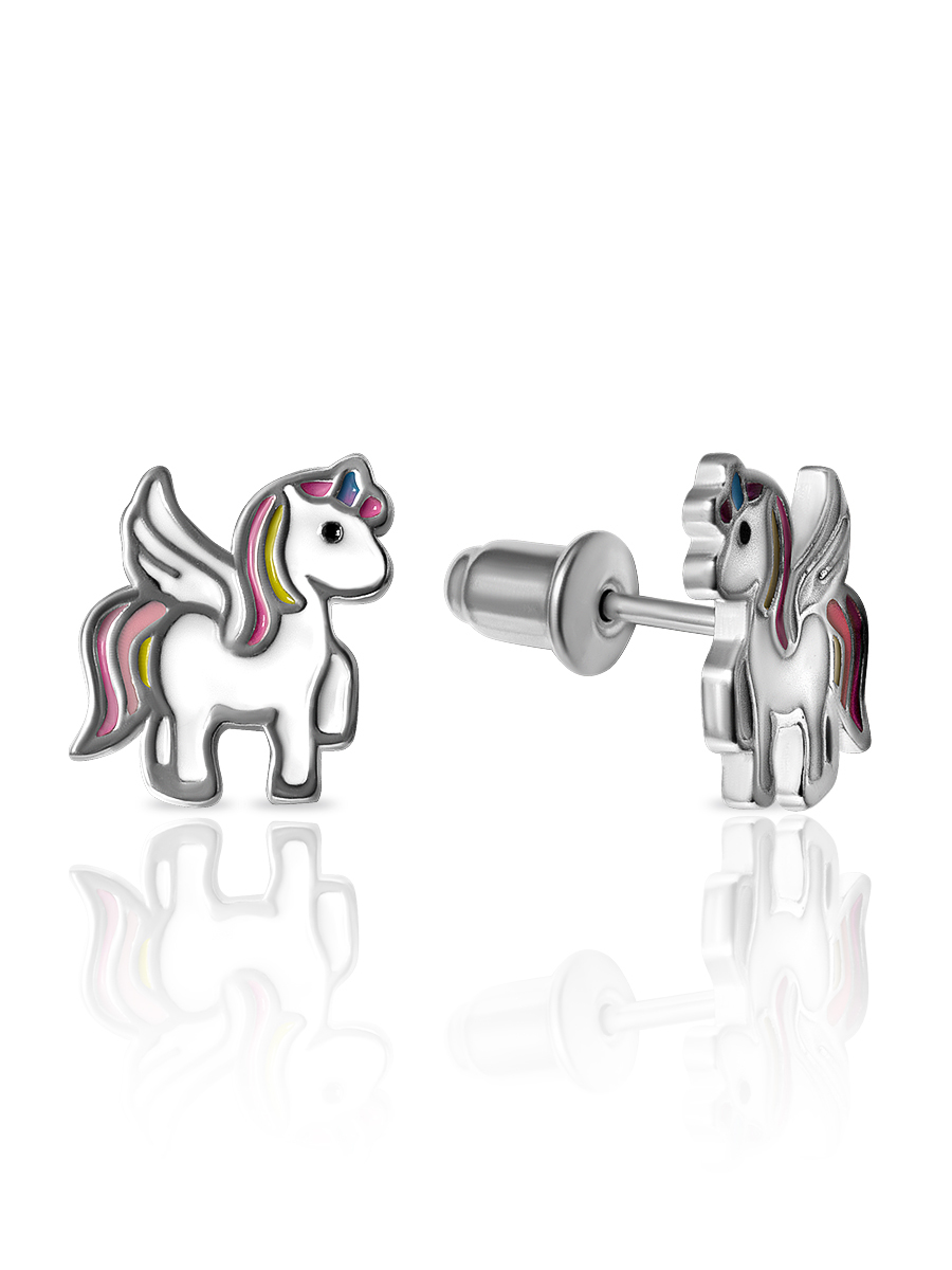Skazka Natali Romanovoi Серьги пусеты/гвоздики детские с эмалью/серебро 925 проба/покрытие родий