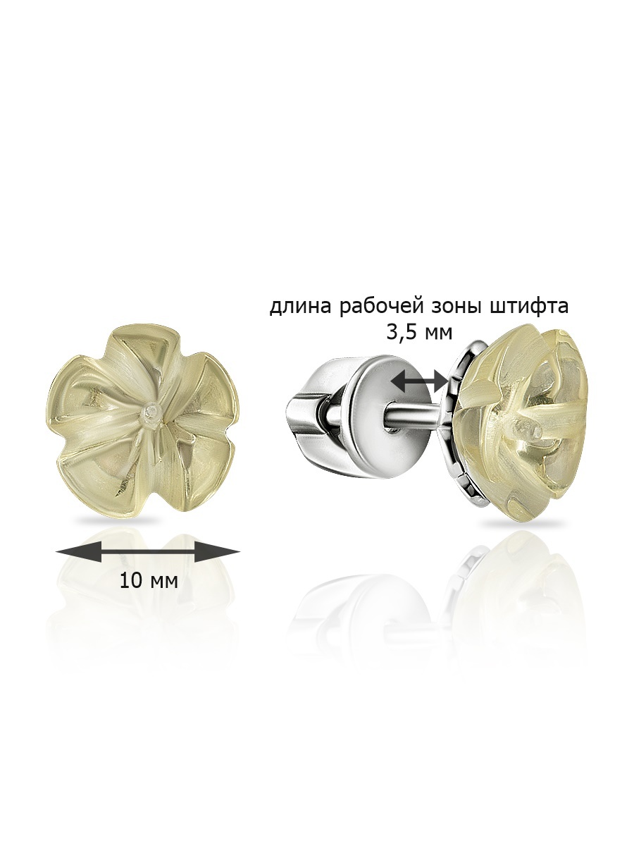 Skazka Natali Romanovoi Серьги пусеты / гвоздики серебряные с натуральным янтарем, 925 проба