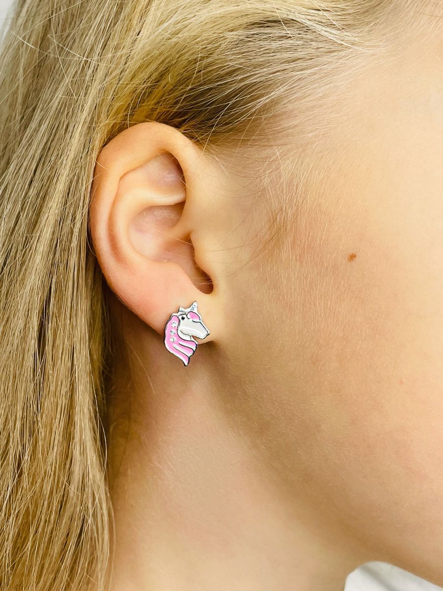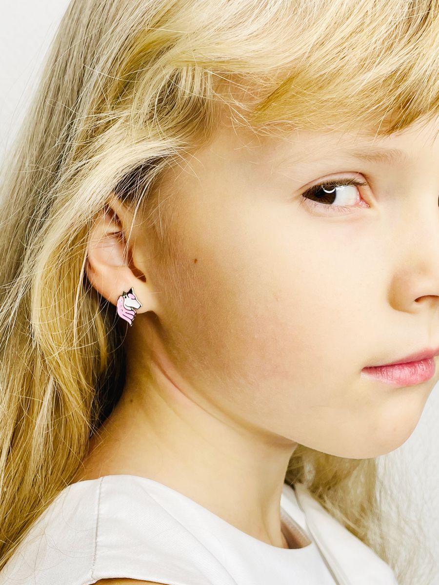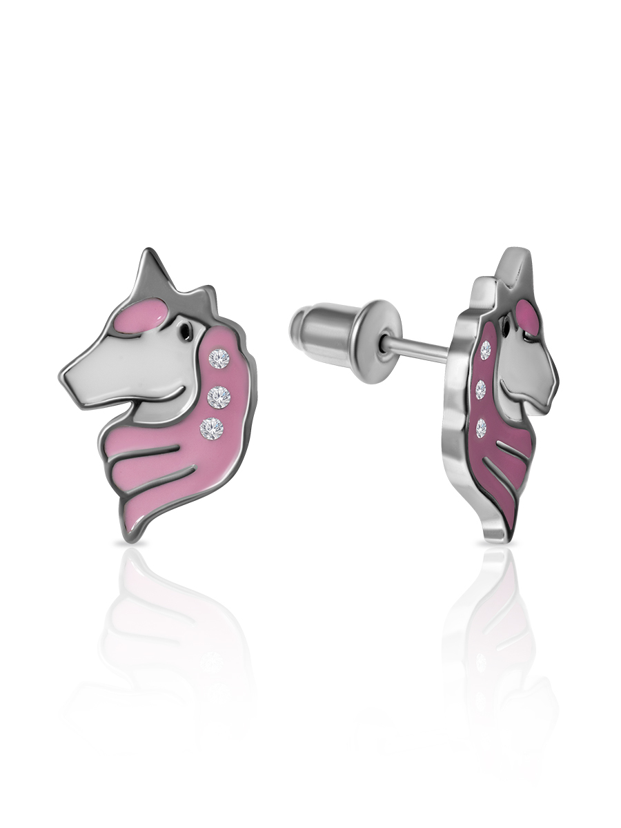 Skazka Natali Romanovoi Серьги пусеты / гвоздики детские с эмалью и фианитами/серебро 925 проба