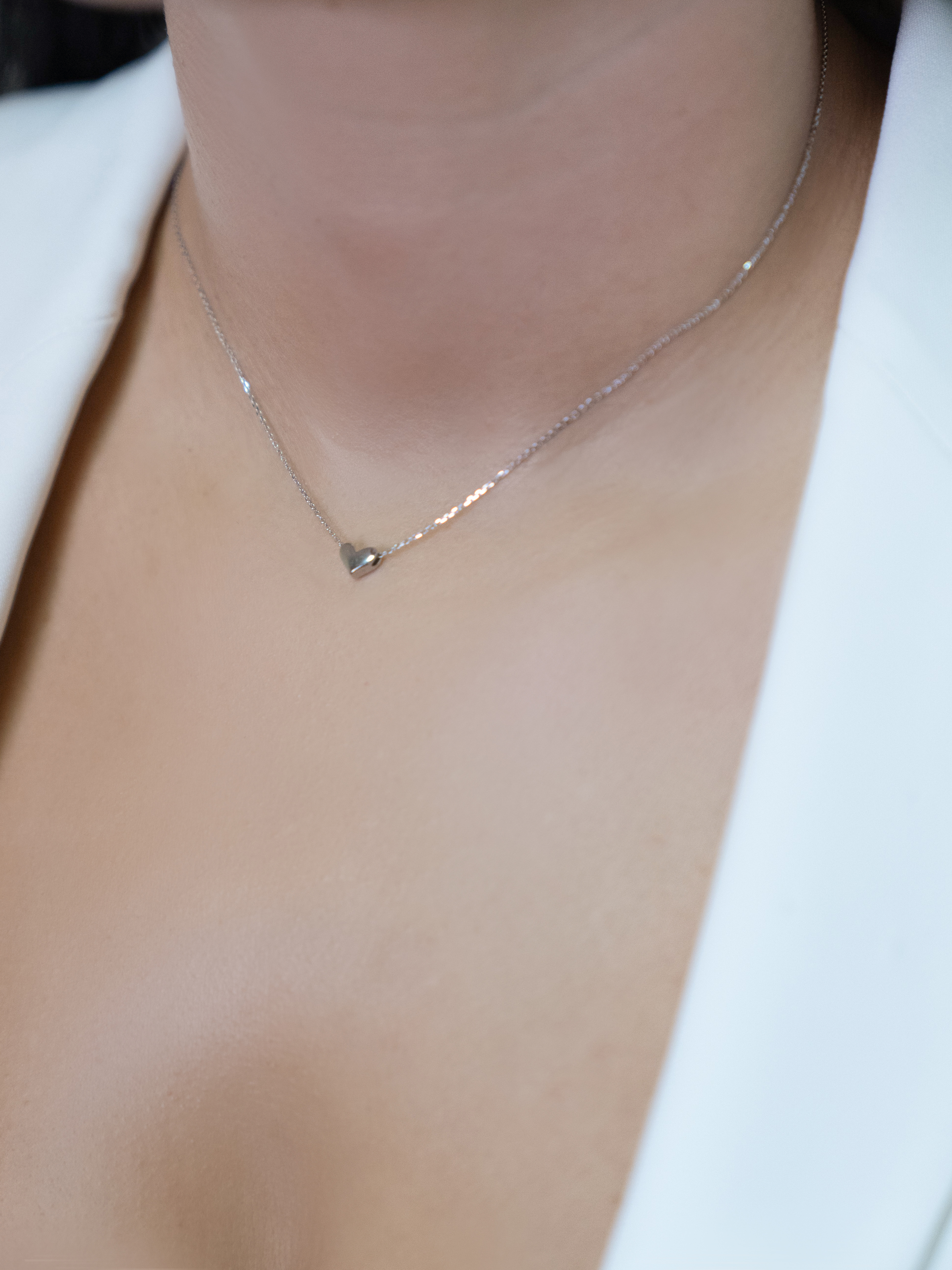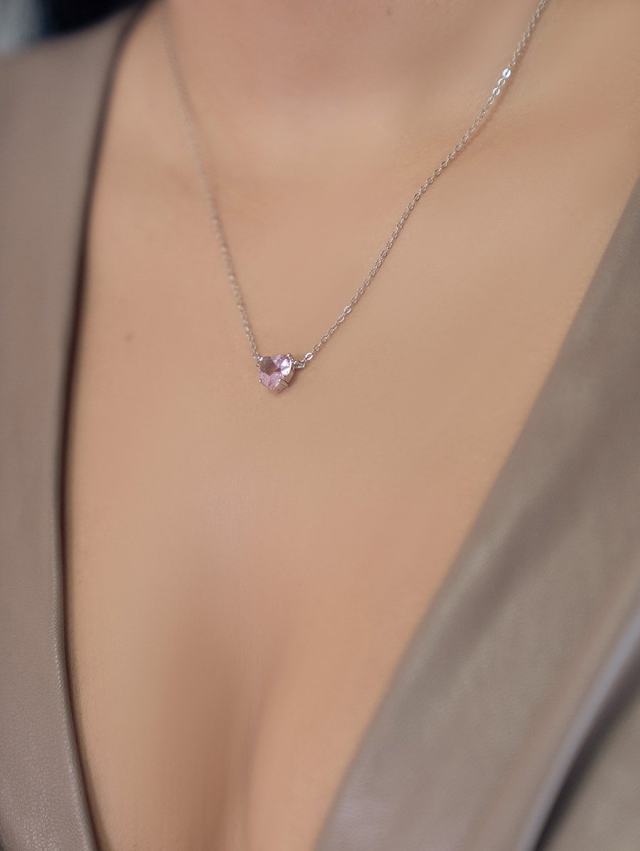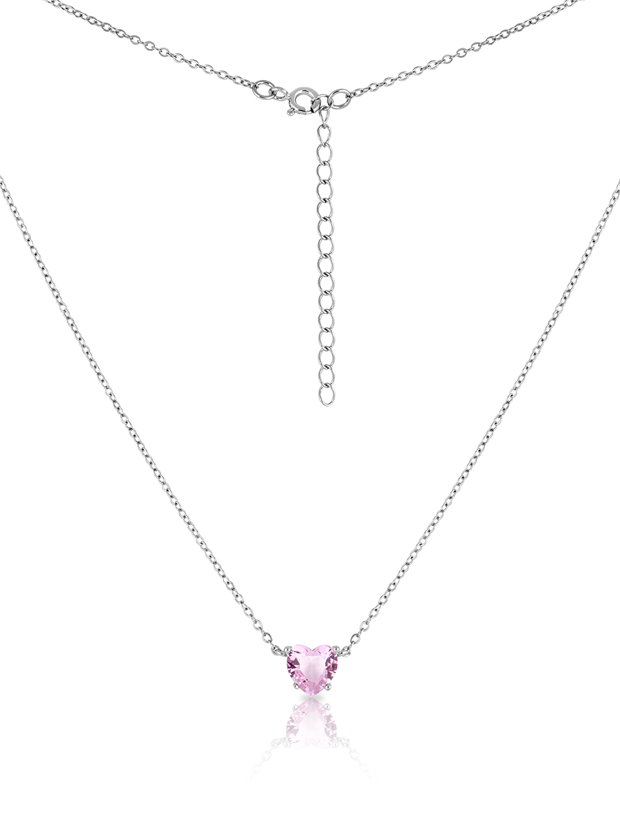 Skazka Natali Romanovoi Колье на цепочке с фианитом сердце, серебро 925 проба, покрытие родий