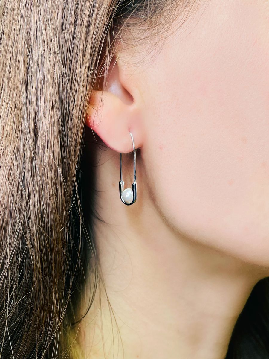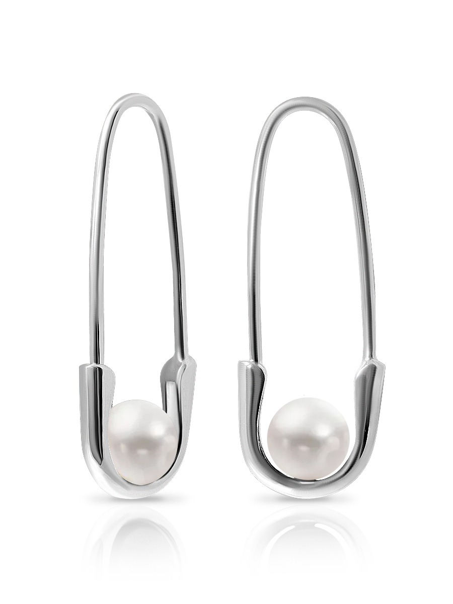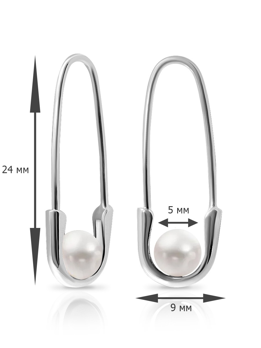 Skazka Natali Romanovoi Серьги булавки с белой жемчужиной / серебро 925 проба