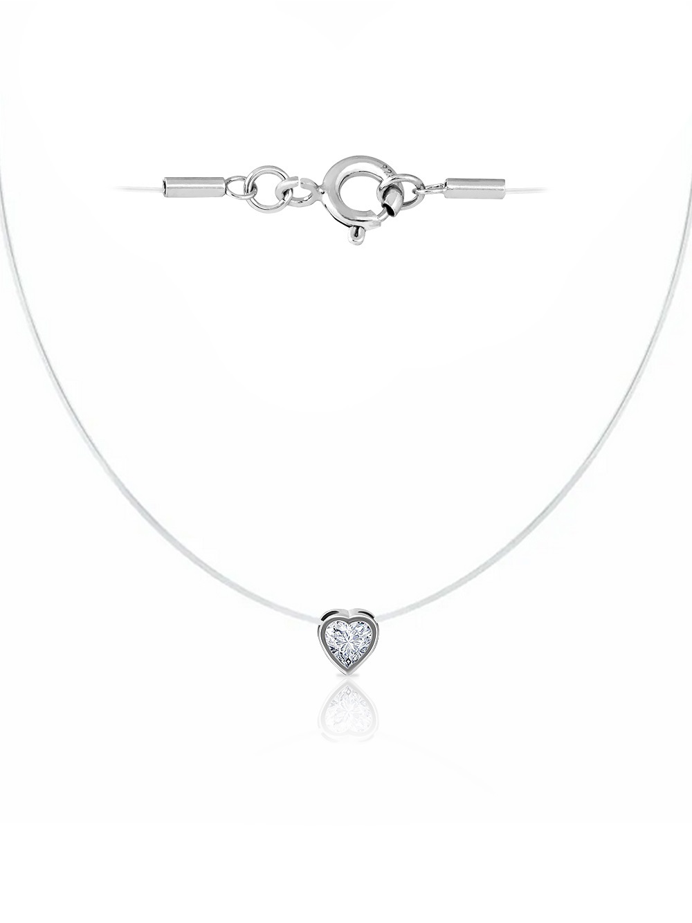 Skazka Natali Romanovoi Колье на леске с фианитом сердце / серебро 925 проба