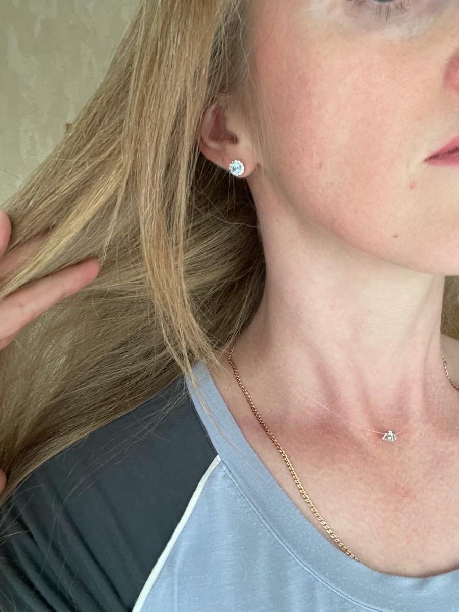 Skazka Natali Romanovoi Серьги пусеты / гвоздики серебряные с фианитом, 925 проба