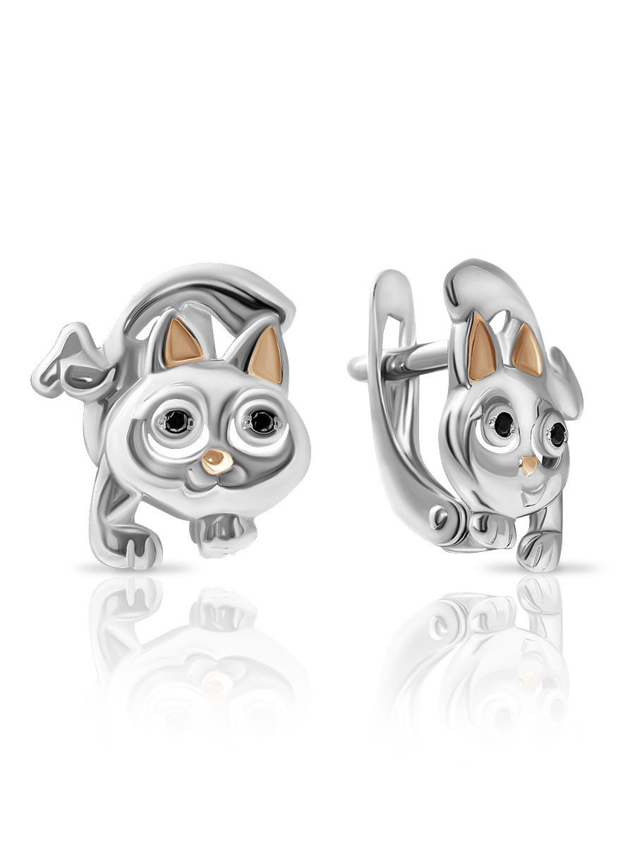 Skazka Natali Romanovoi Серьги детские с фианитами Котенок / серебро 925 проба
