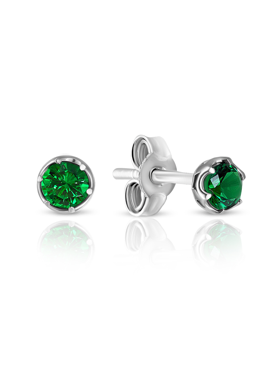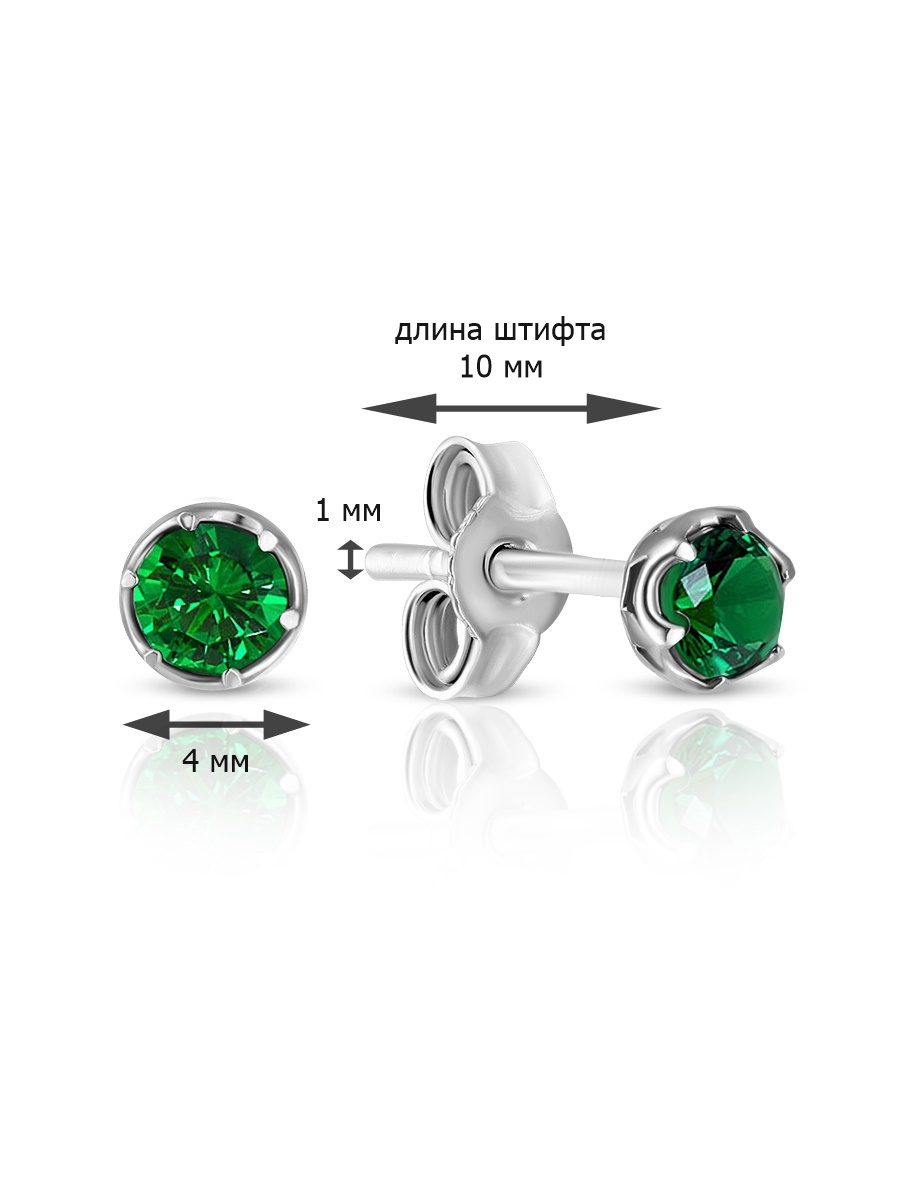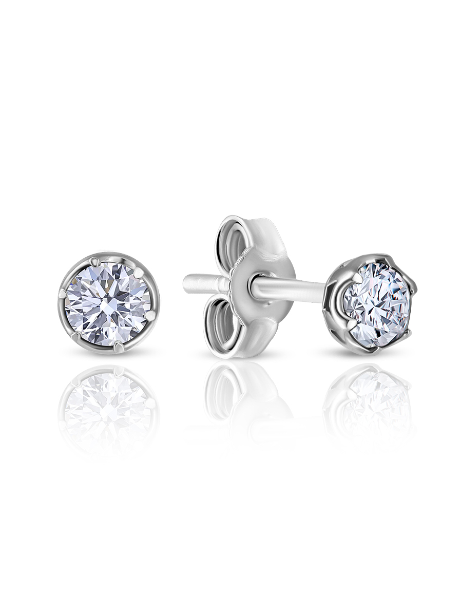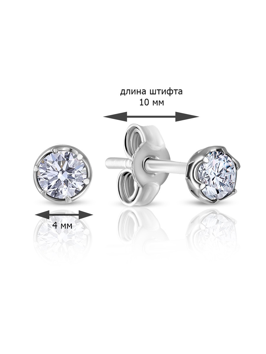 Skazka Natali Romanovoi Серьги пусеты / гвоздики серебряные с фианитом, 925 проба