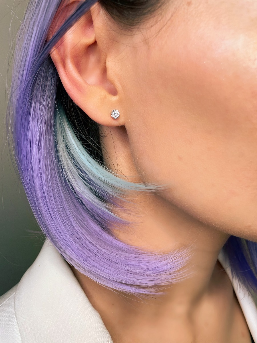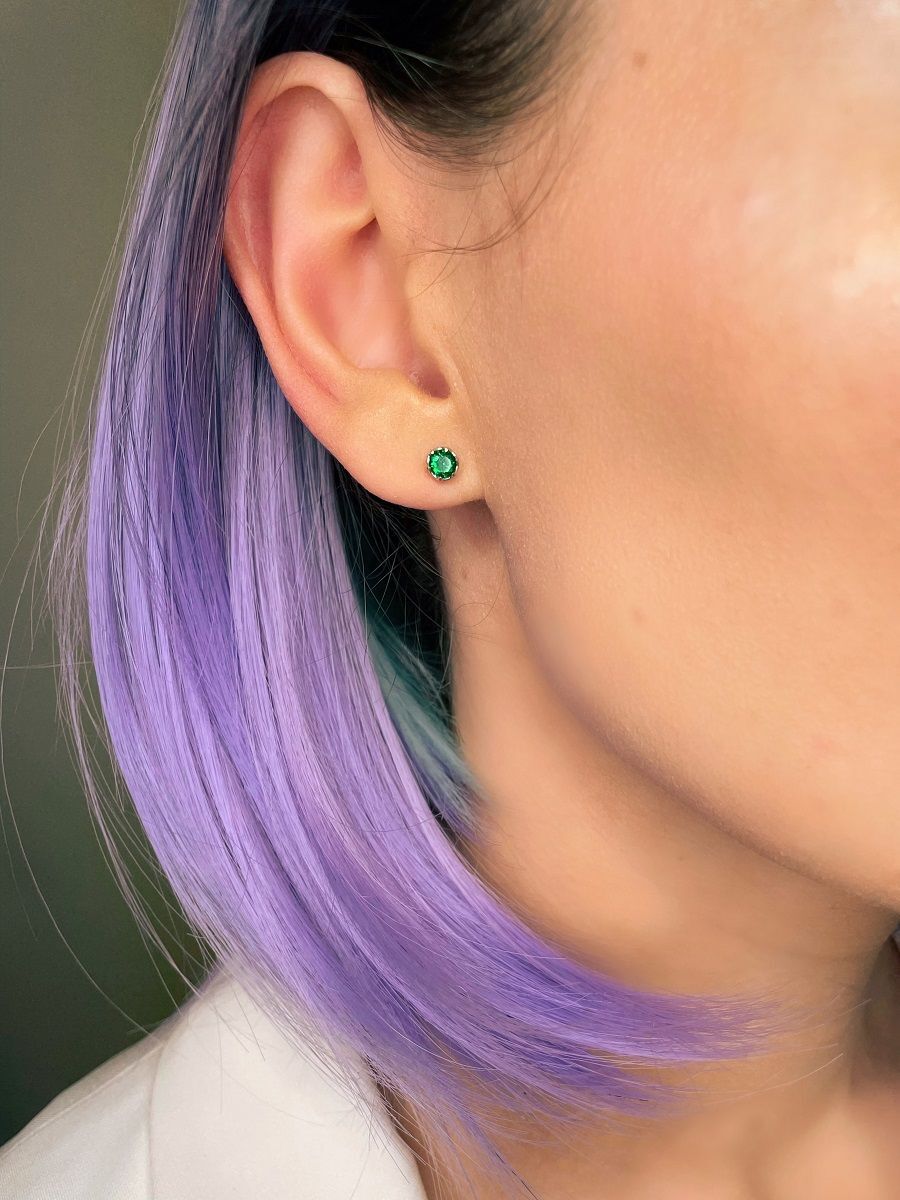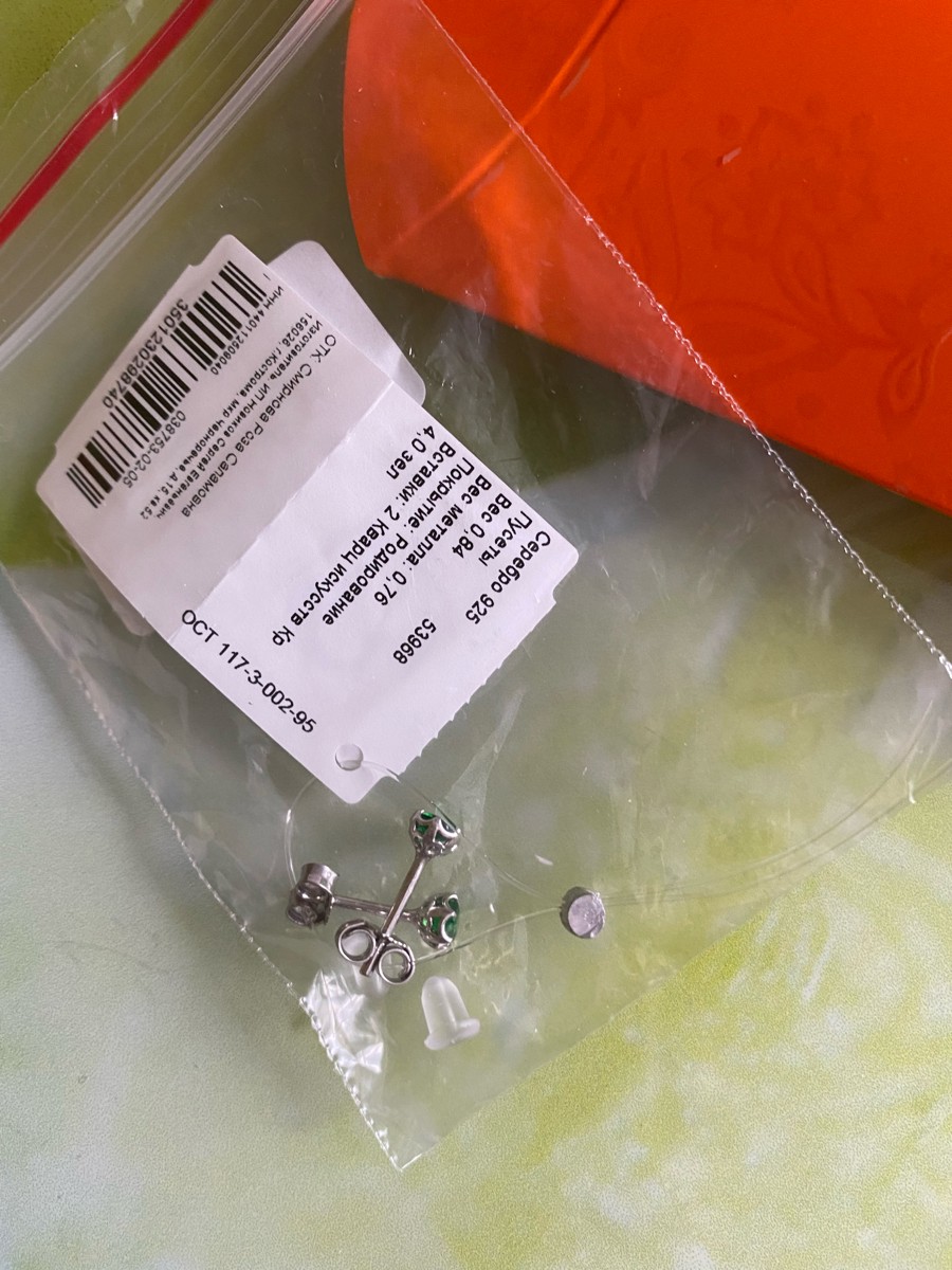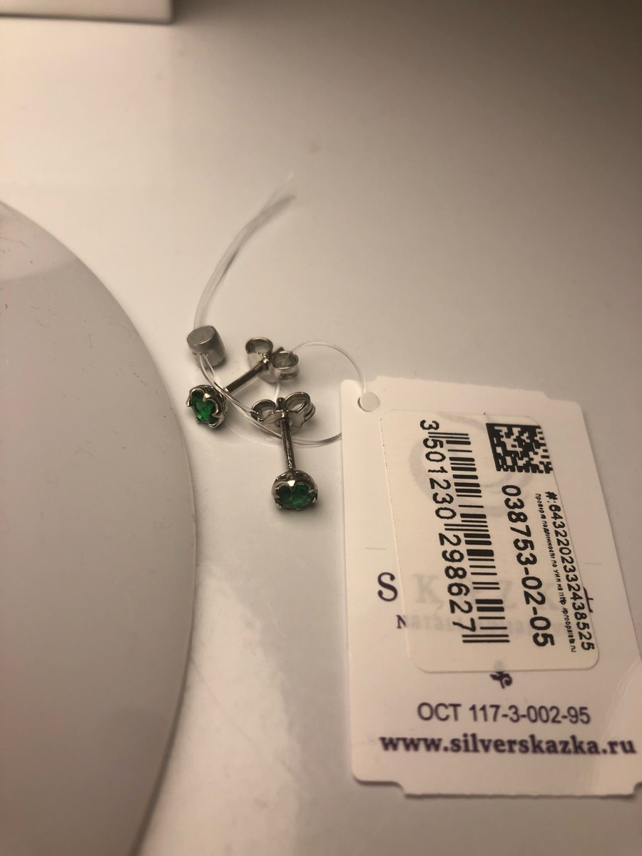 Skazka Natali Romanovoi Серьги пусеты / гвоздики серебряные с фианитом, 925 проба
