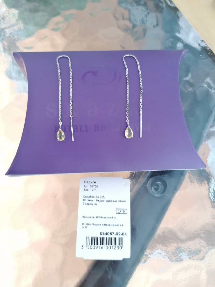 Skazka Natali Romanovoi Серьги пусеты / гвоздики серебряные с кварцем, 925 проба