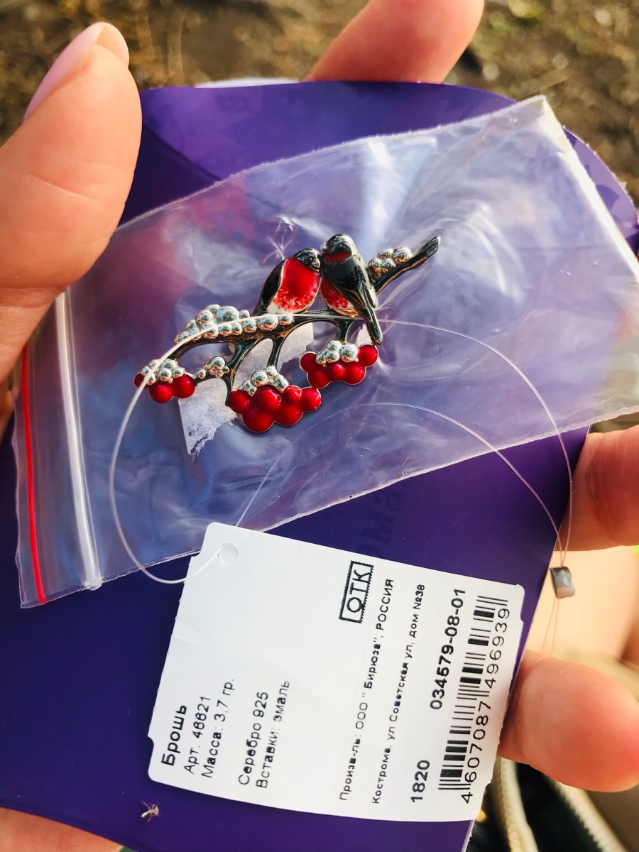 Skazka Natali Romanovoi Брошь Снегири на ветке рябины