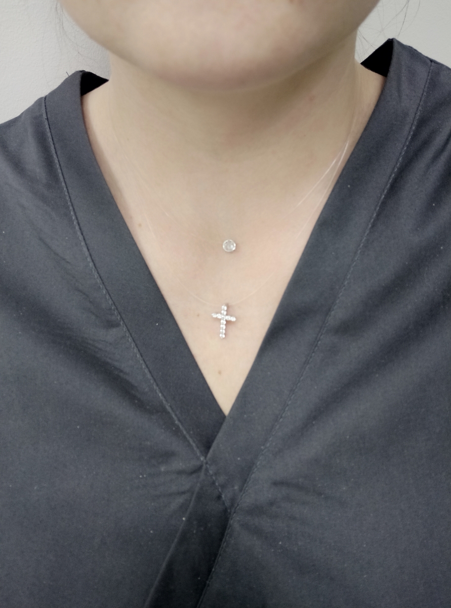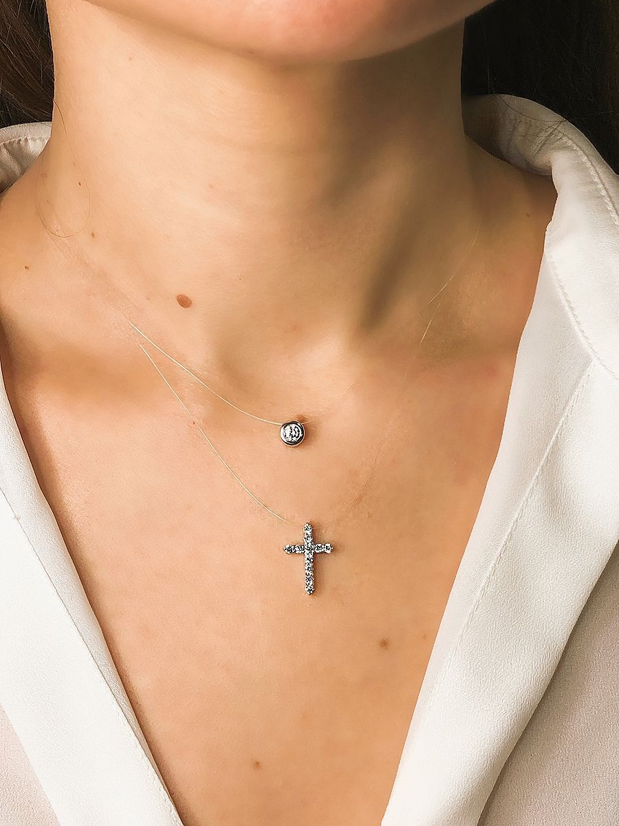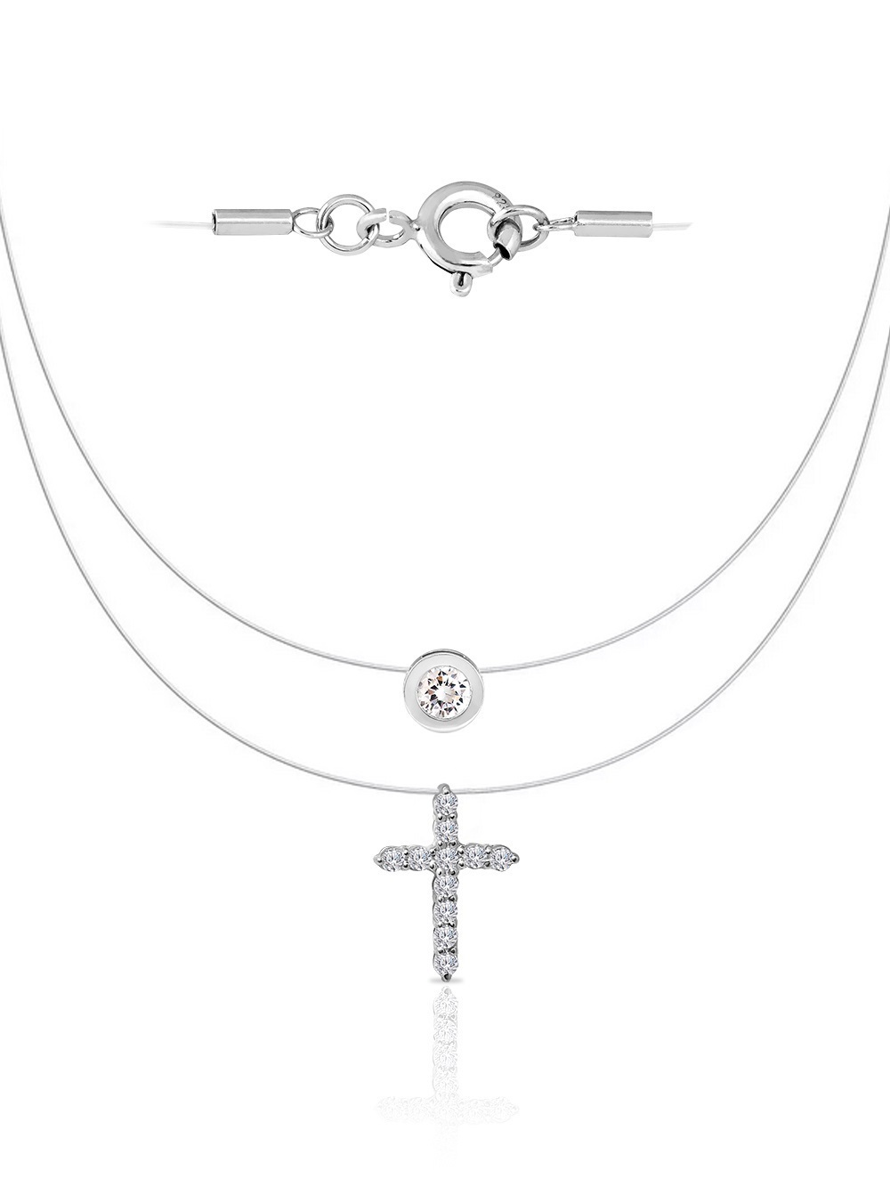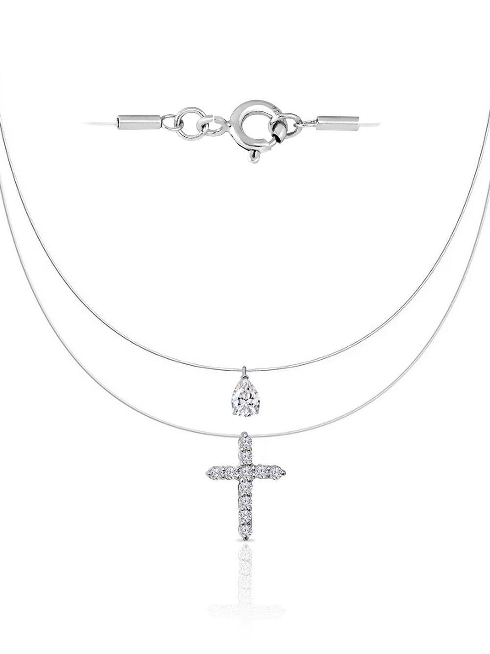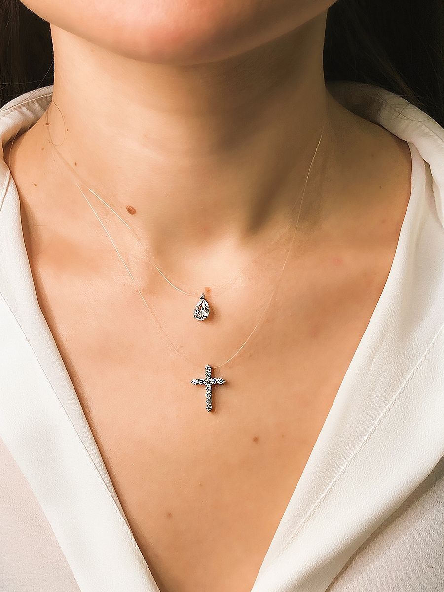 Skazka Natali Romanovoi Колье невидимка , кулоны на леске двойной, 925 проба