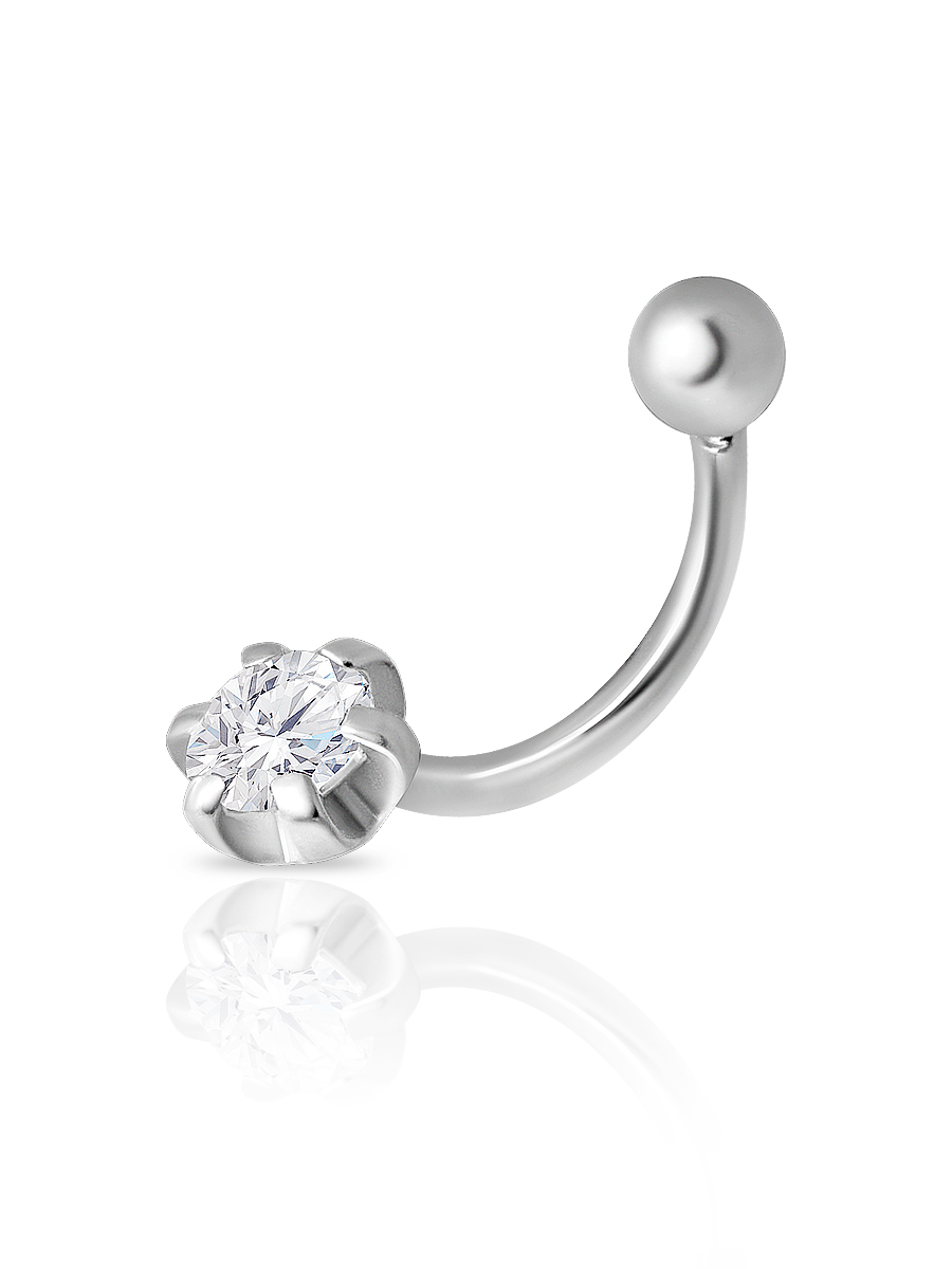 Skazka Natali Romanovoi Пирсинг в пупок из серебра 925 пробы покрытого родием со вставкой фианит