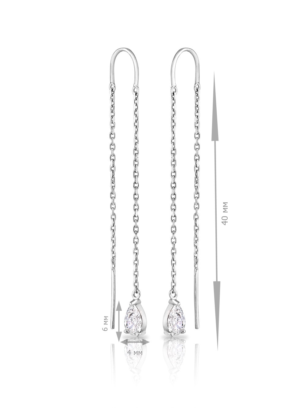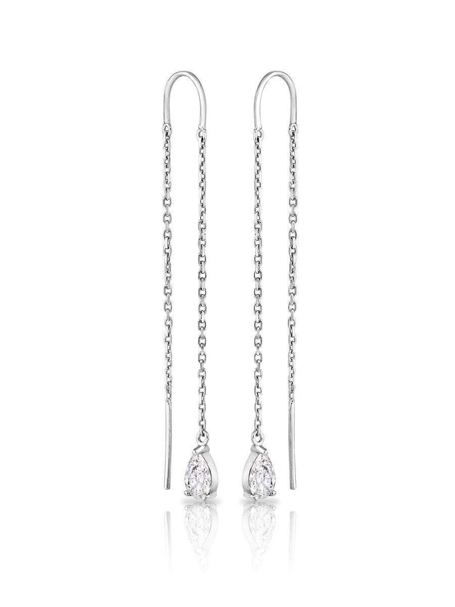 Skazka Natali Romanovoi Серьги протяжки с фианитом/серебро 925 проба/покрытие родий
