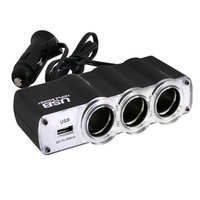 Разветвитель прикуривателя 3 гнезда + USB SKYWAY Черный, предохранитель 5А, USB 1A S02301007