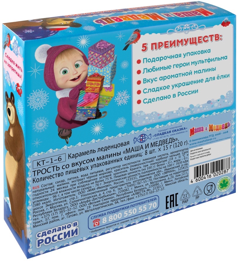 Сладкая Сказка Маша и Медведь карамельные тросточки, 120 г