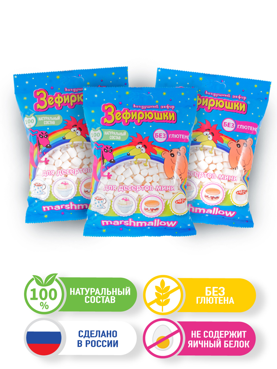 Воздушный зефир для десертов Зефирюшки, без глютена, 3 шт по 125 г.