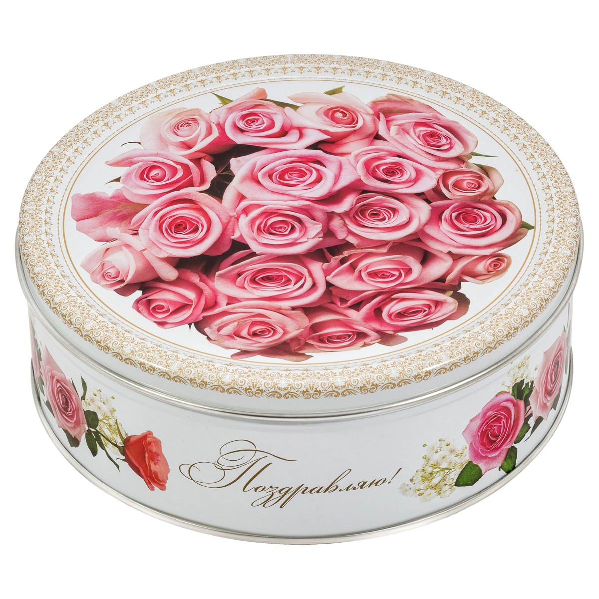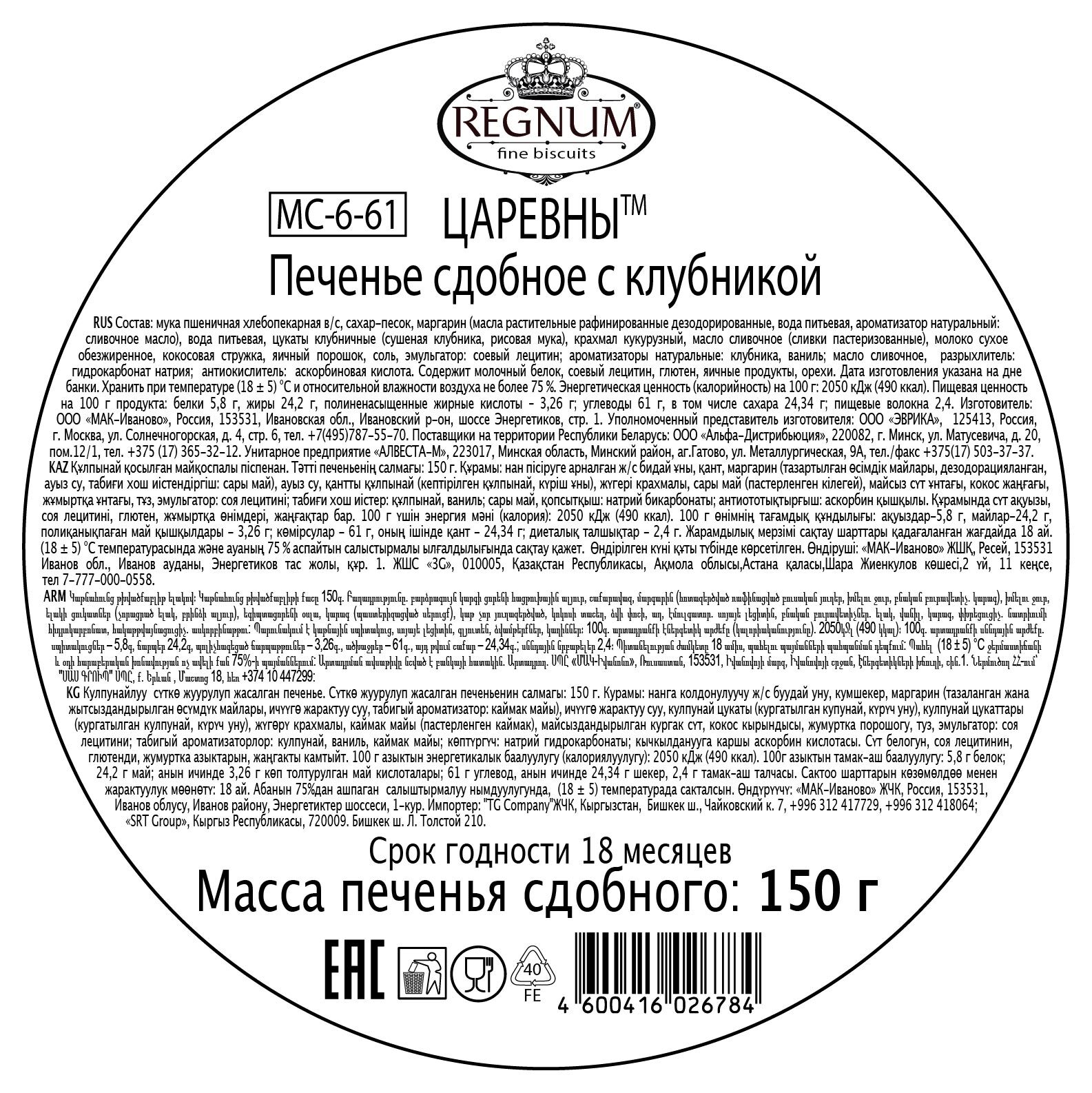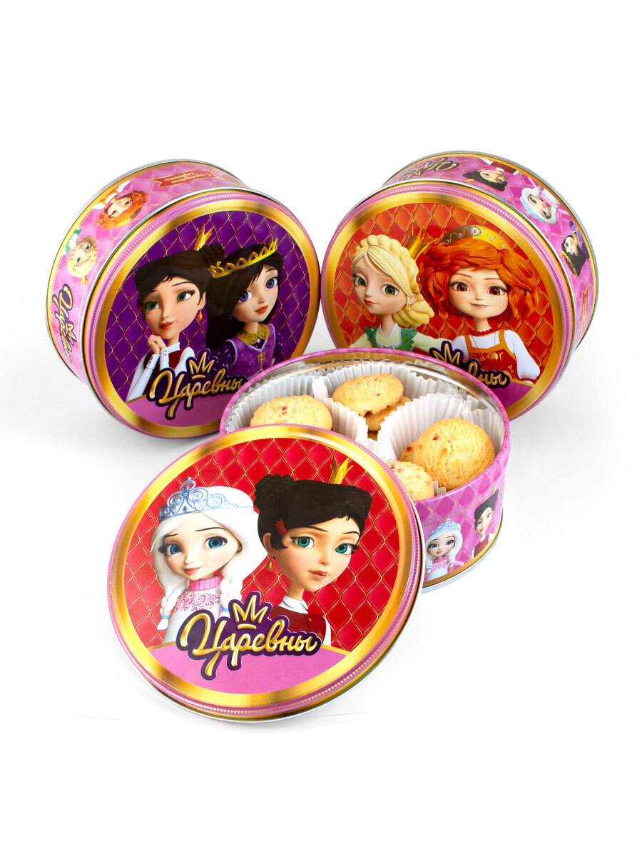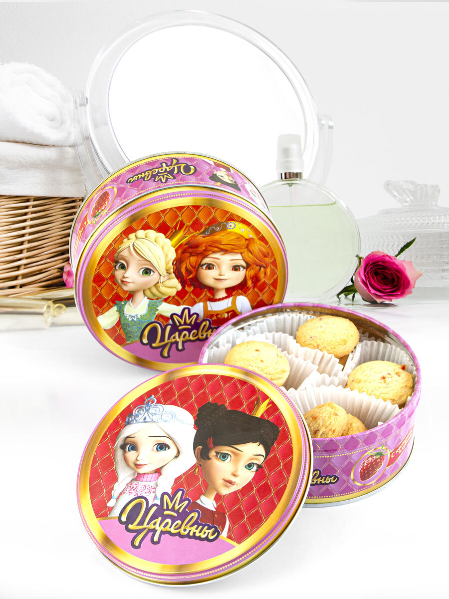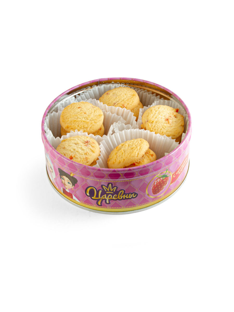 Печенье сдобное с кусочками клубники в жестяной банке "Царевны", 150 г.