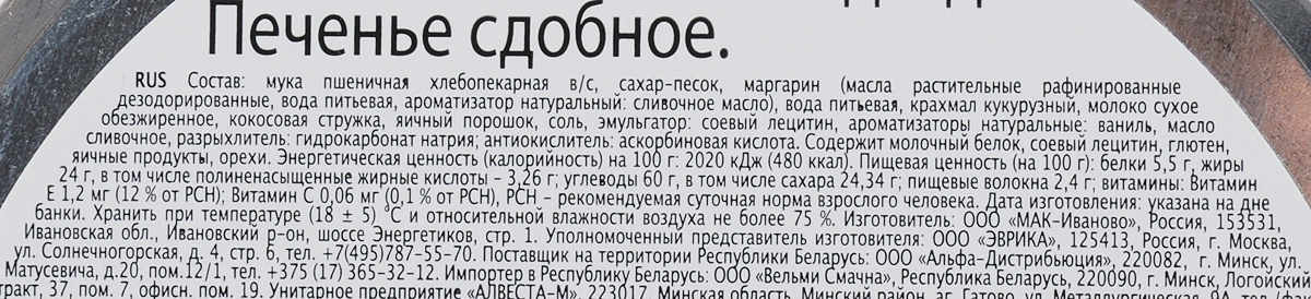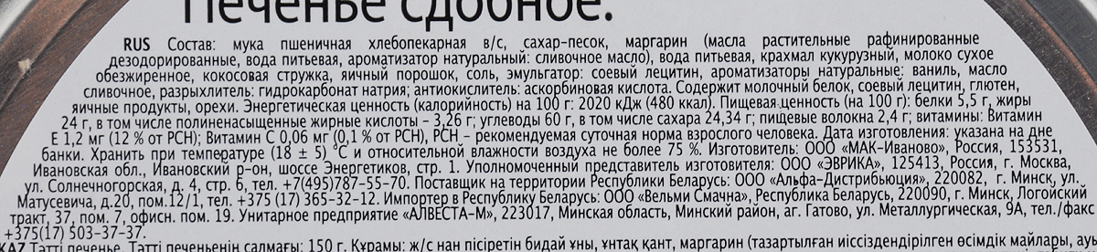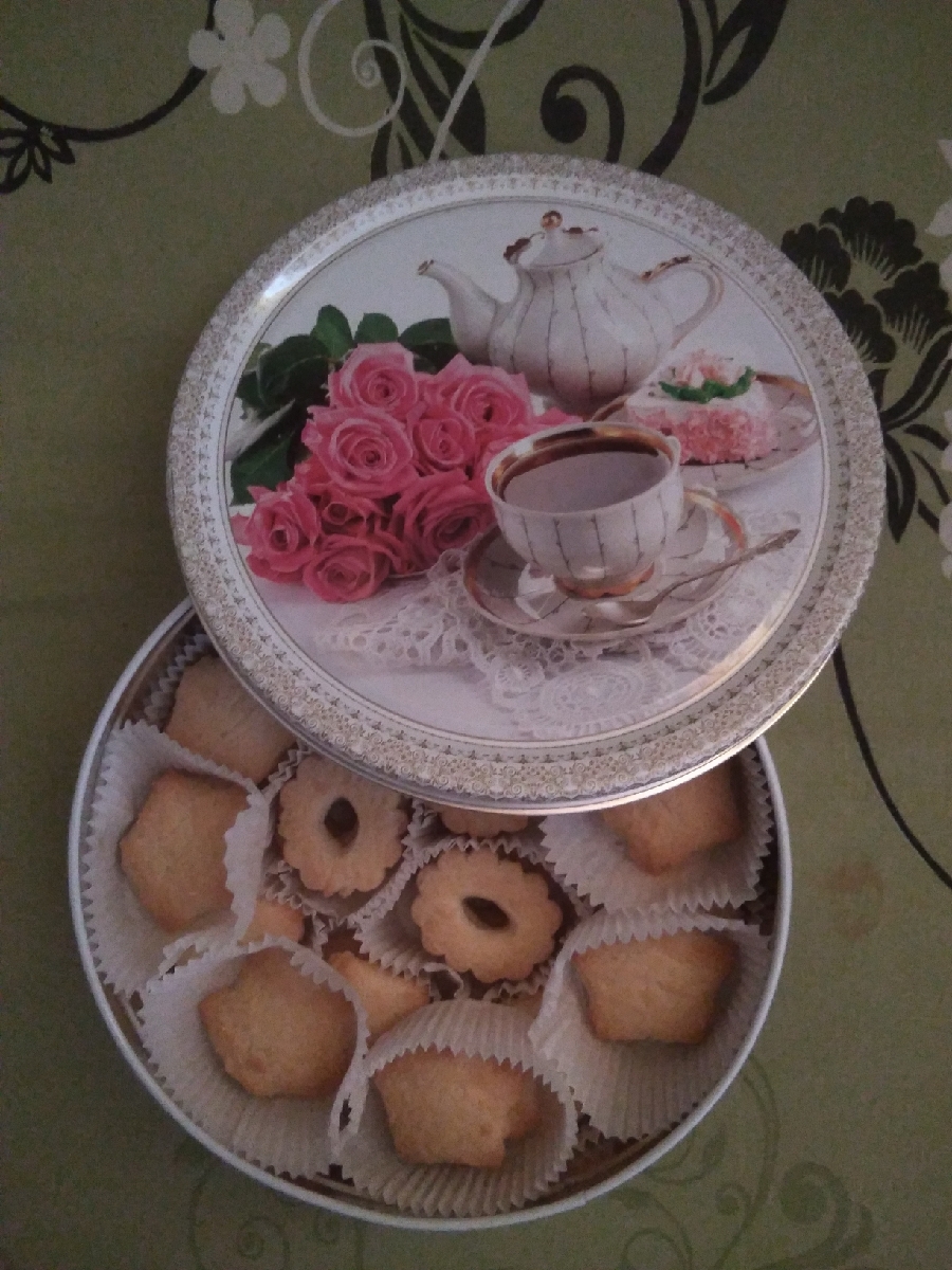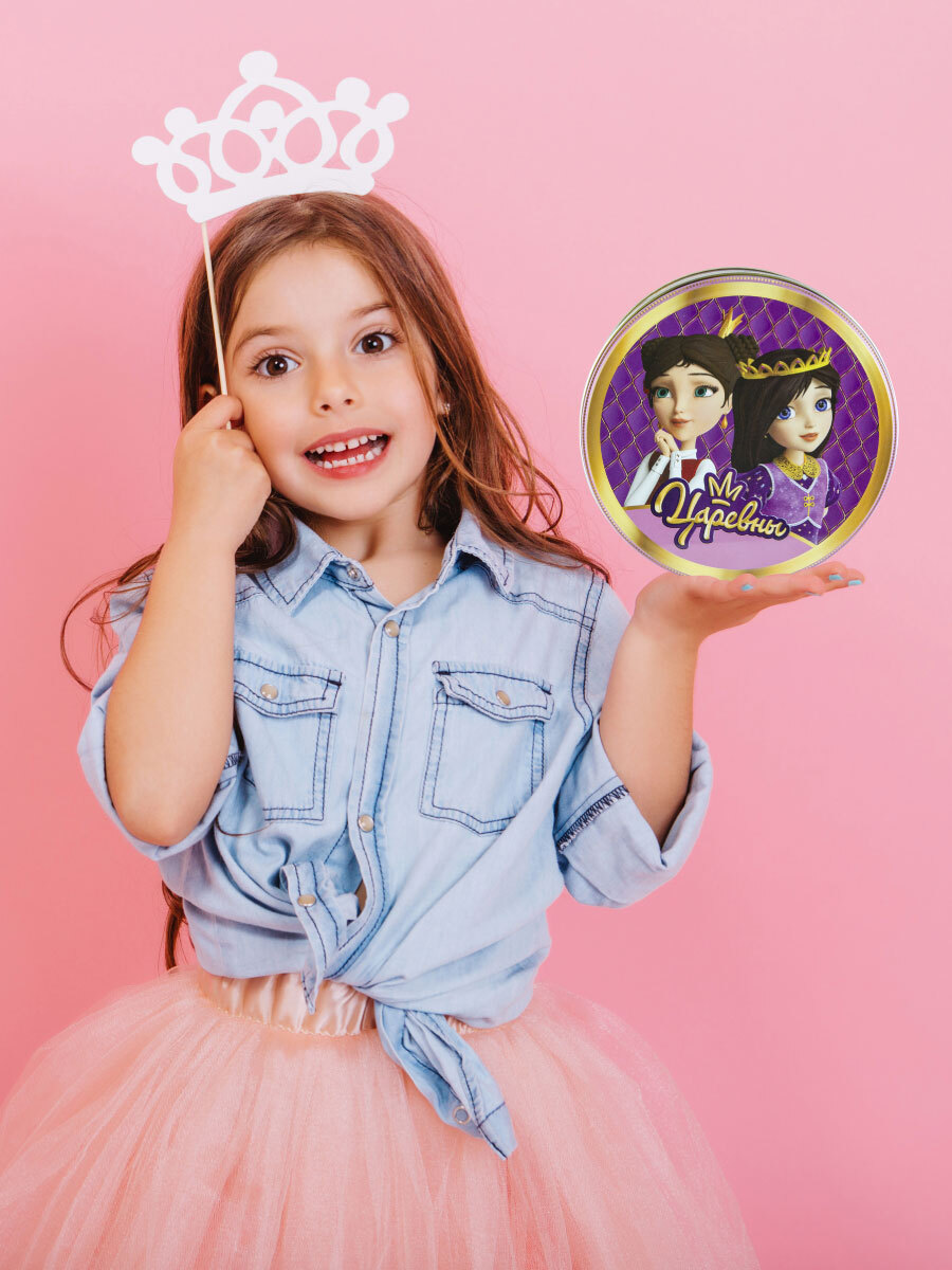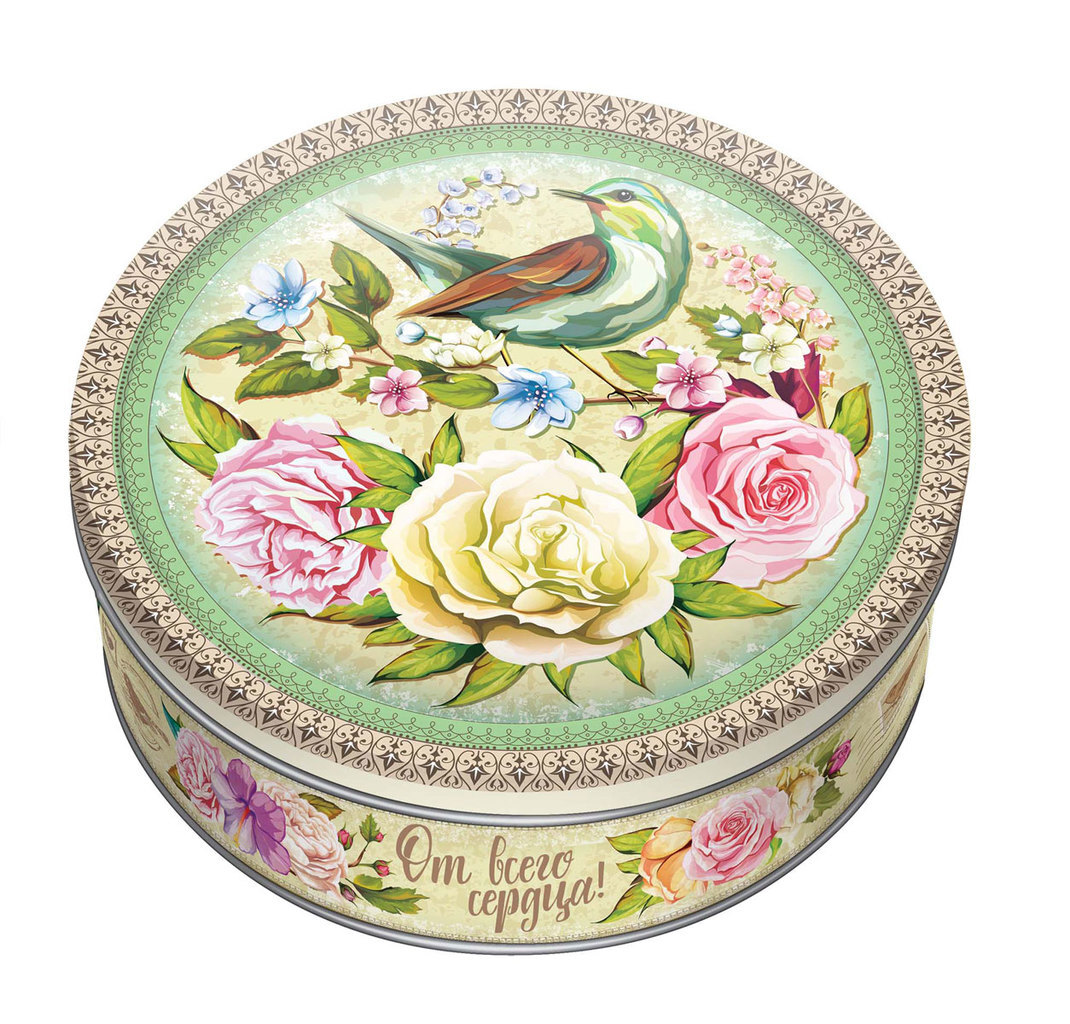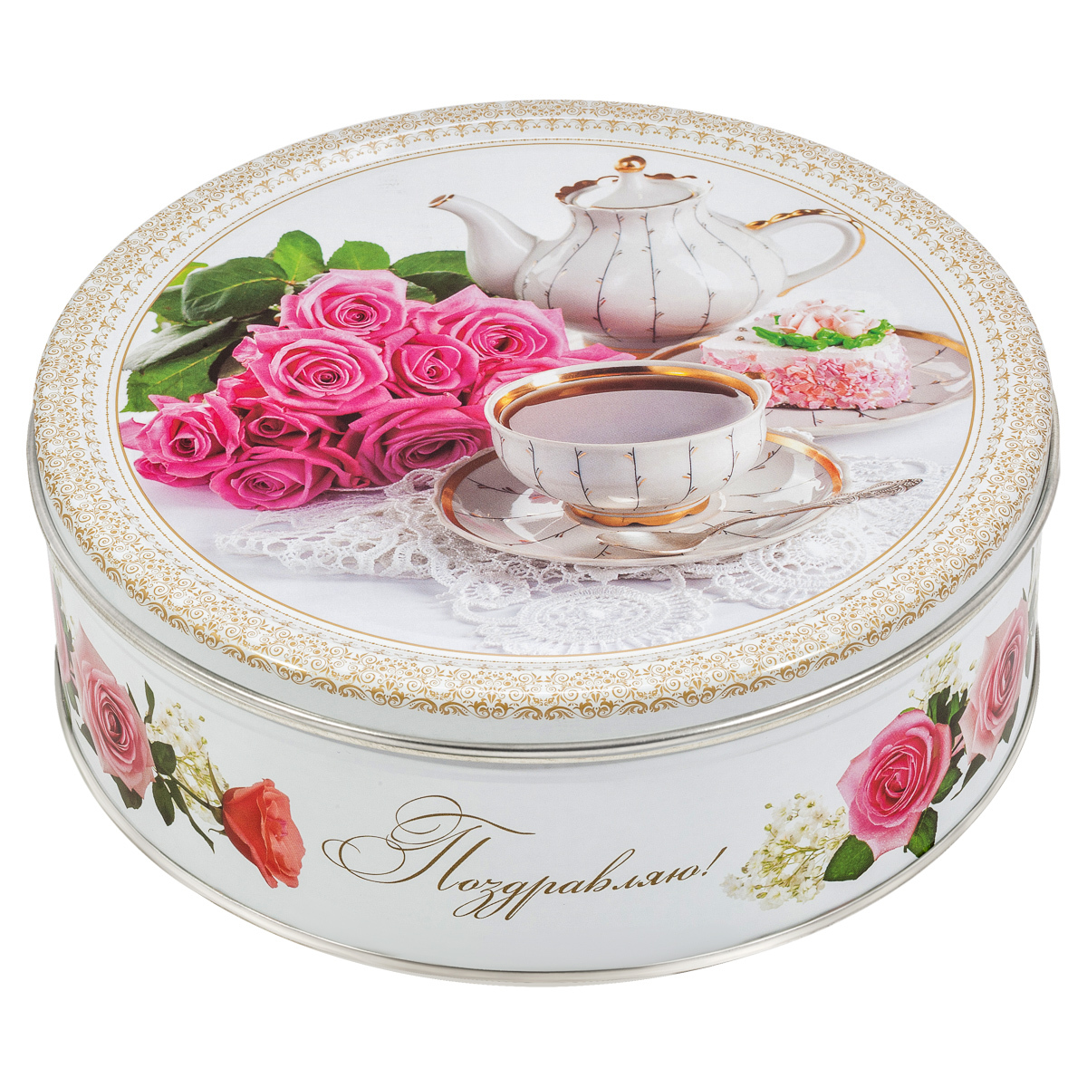 Печенье сдобное с кусочками клубники в жестяной банке "Царевны", 150 г.