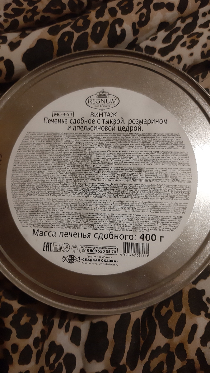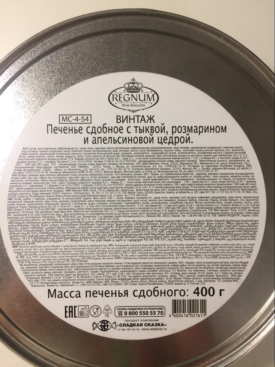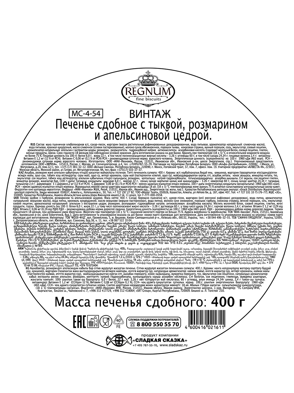Сладкая Сказка Regnum винтаж печенье сдобное с тыквой, розмарином и апельсиновой цедрой, 400 г