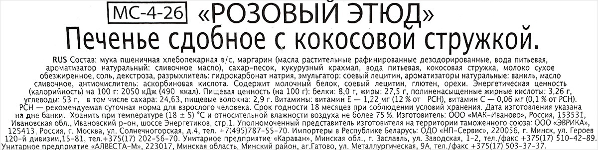 Сладкая Сказка Regnum Розовый этюд печенье с кокосовой стружкой, 400 г
