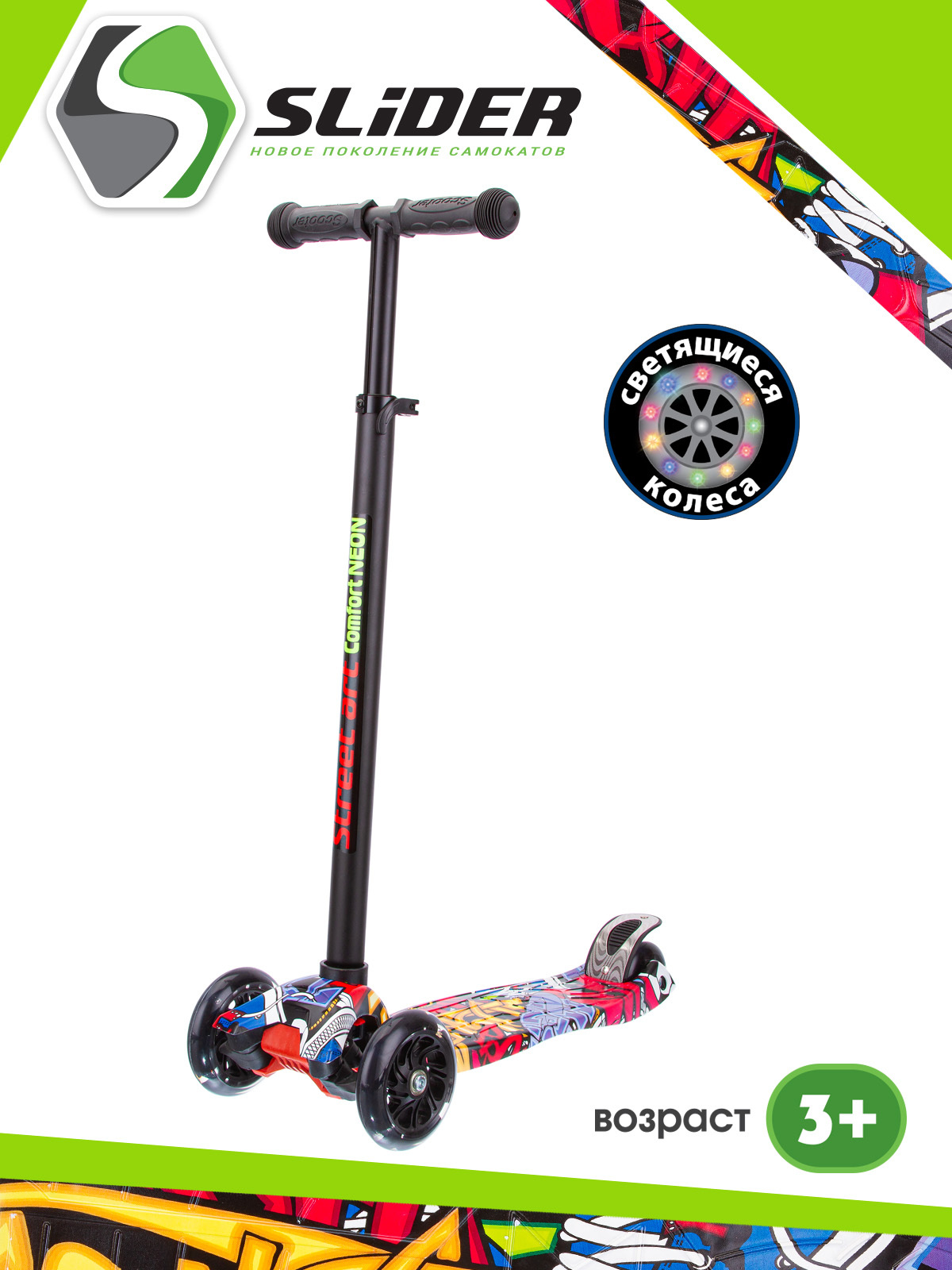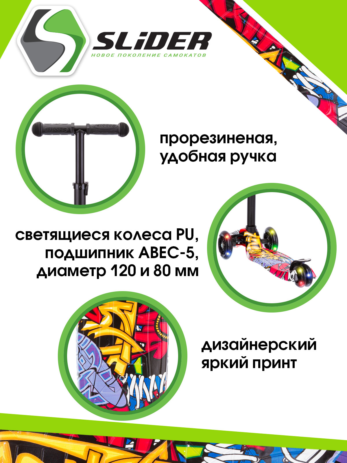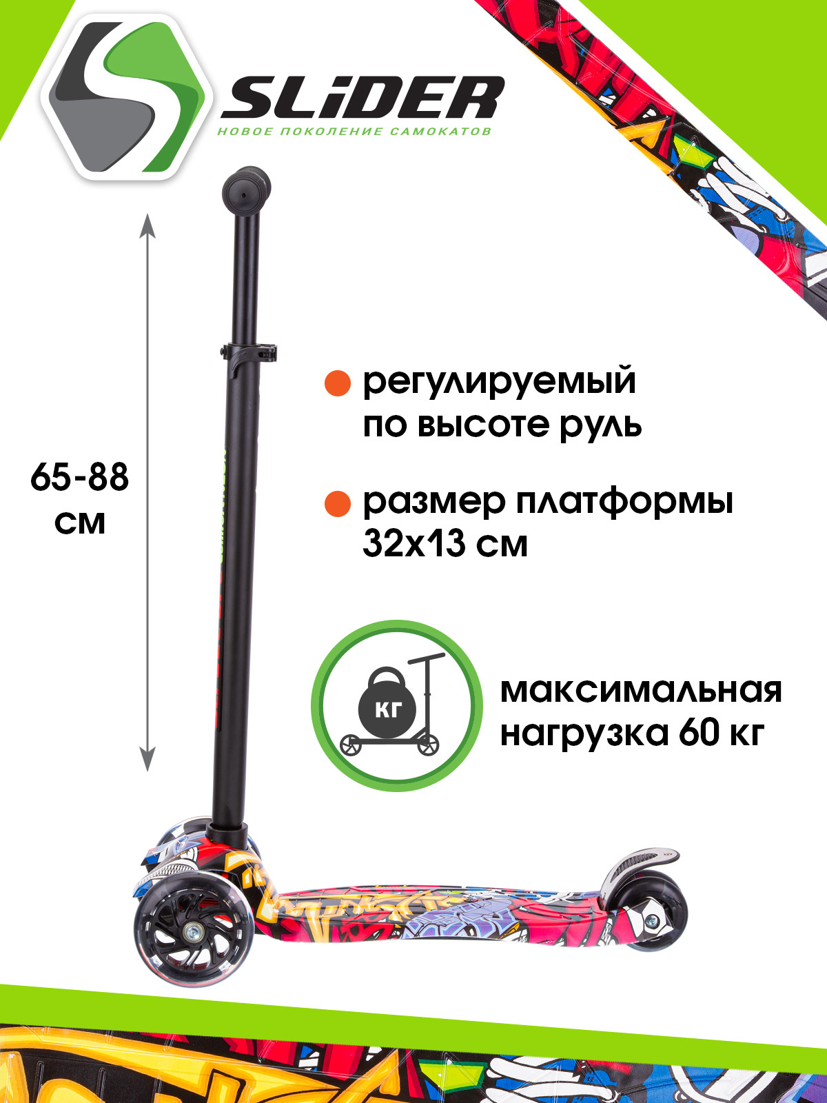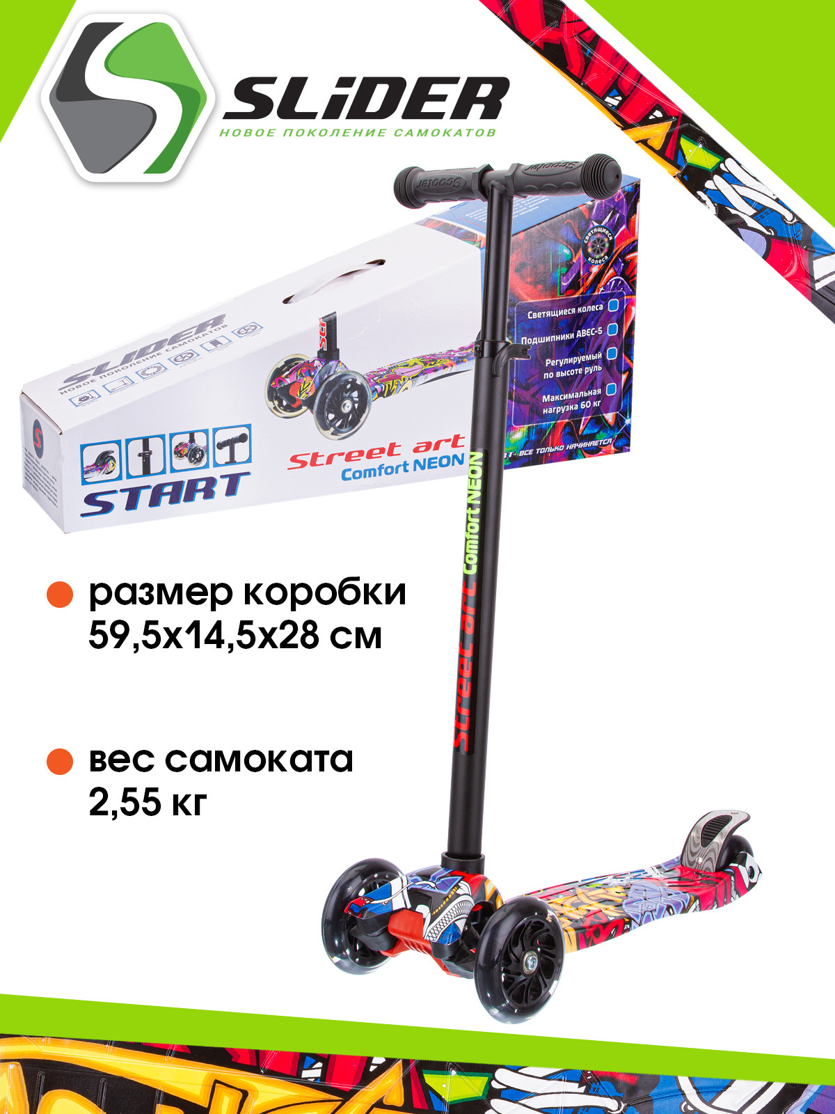 САМОКАТ SLIDER, четырехколесный, подшипники АВЕС-5, колеса светящиеся, нагрузка до 60кг