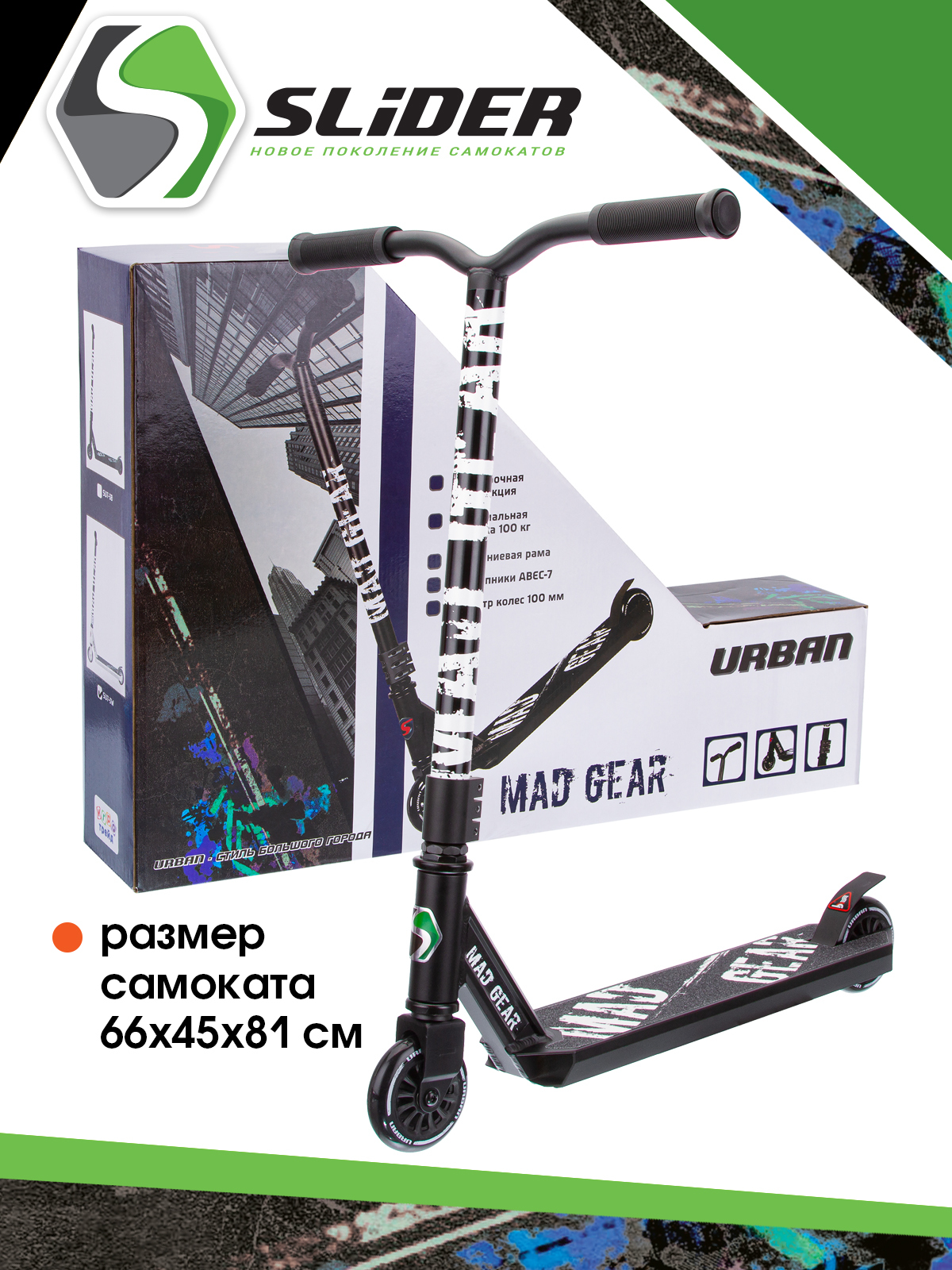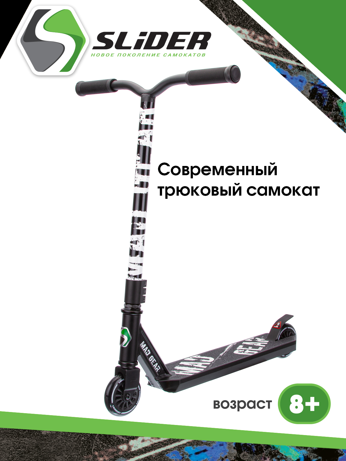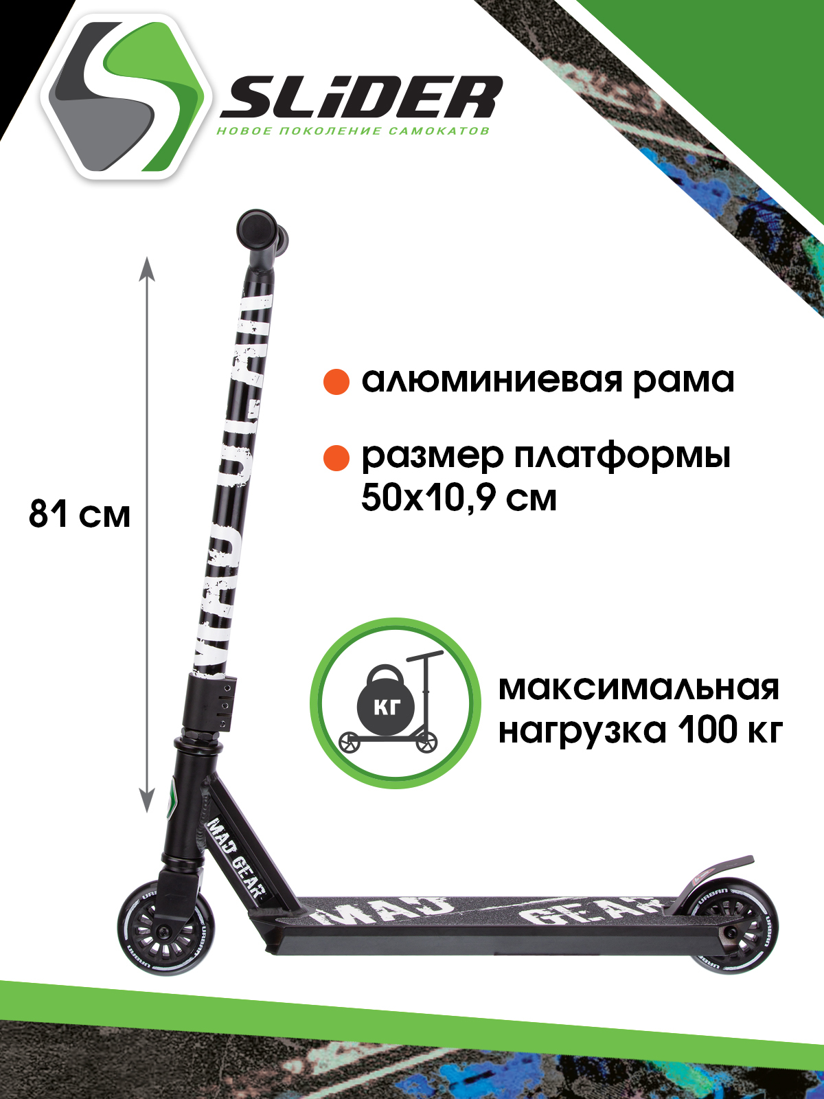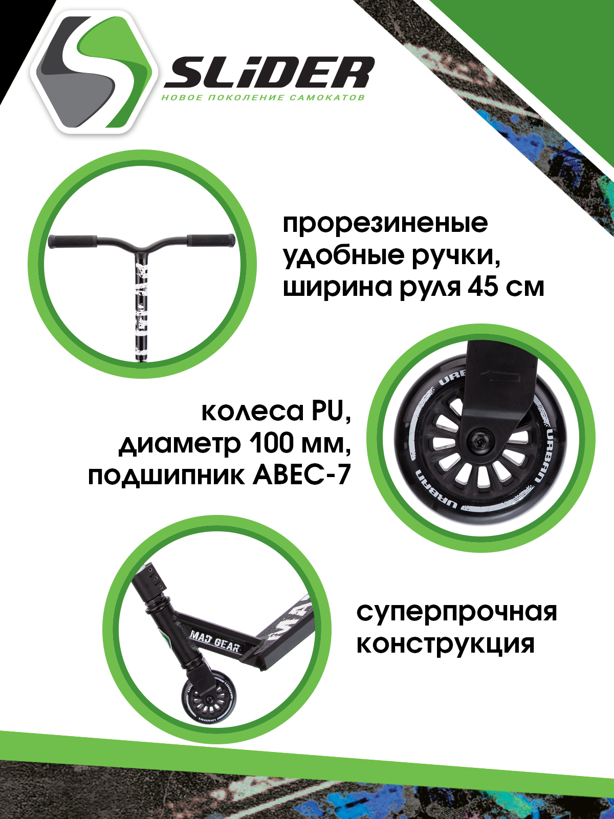 САМОКАТ ДВУХКОЛЕСНЫЙ SLIDER, трюковой, АВЕС 7, колеса PU, до 100 кг