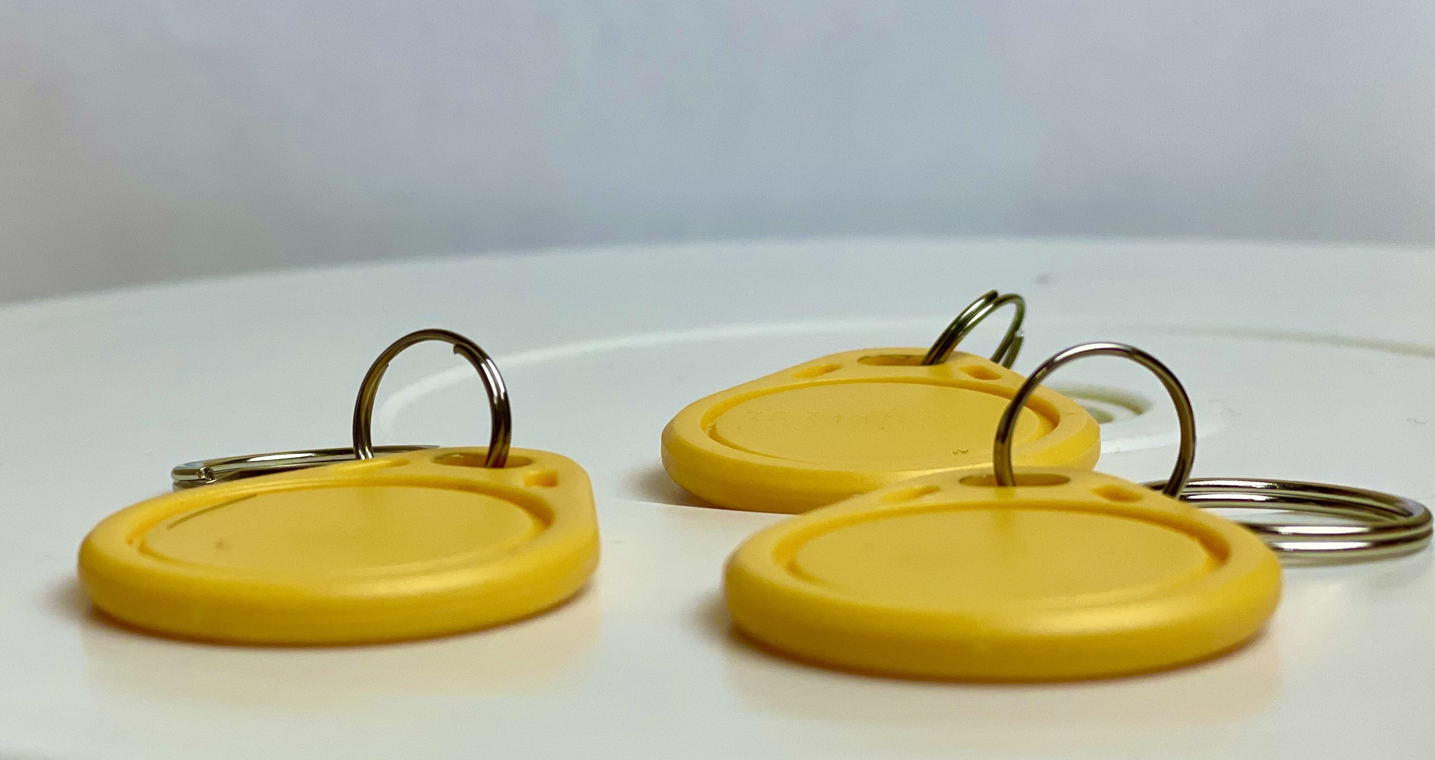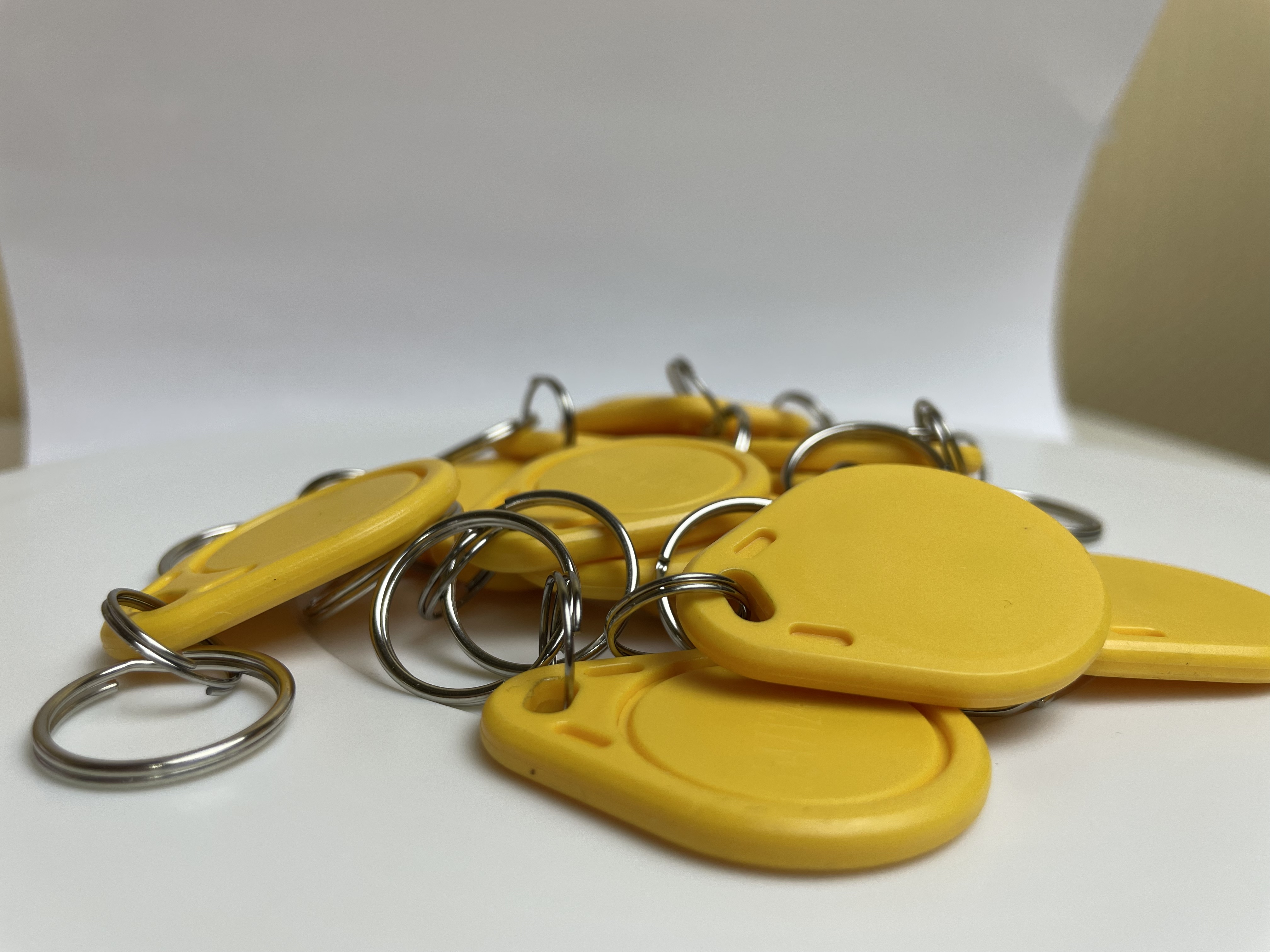 Желтый ключ-брелок формата Mifare подходит для домофонии Hikvision (30 шт.) (Не для перезаписи)