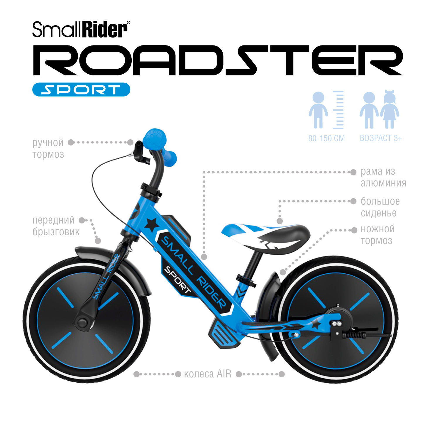Беговел с 2-мя тормозами и алюминиевой рамой Small Rider Roadster Sport (AIR, синий, 2021)