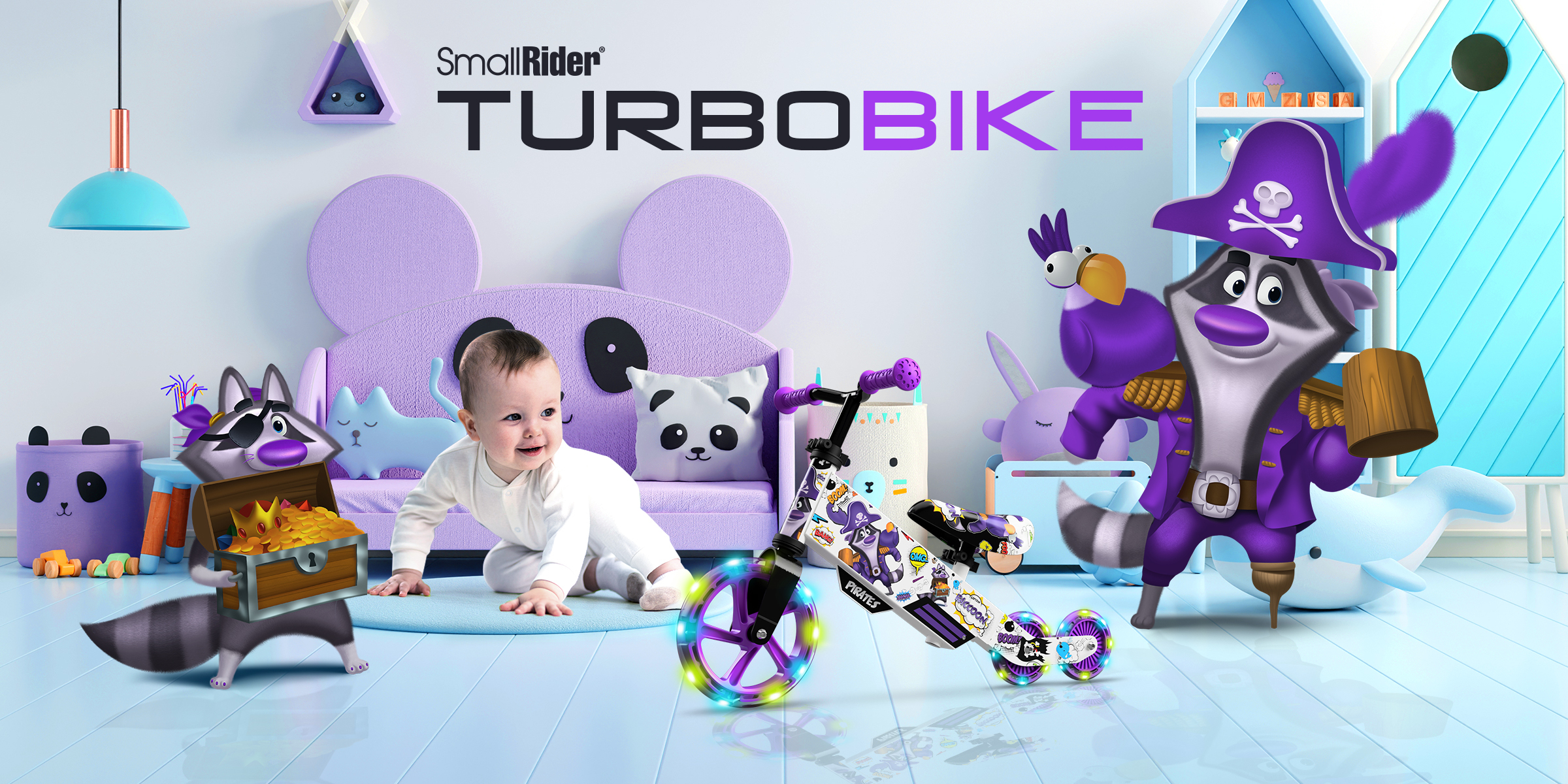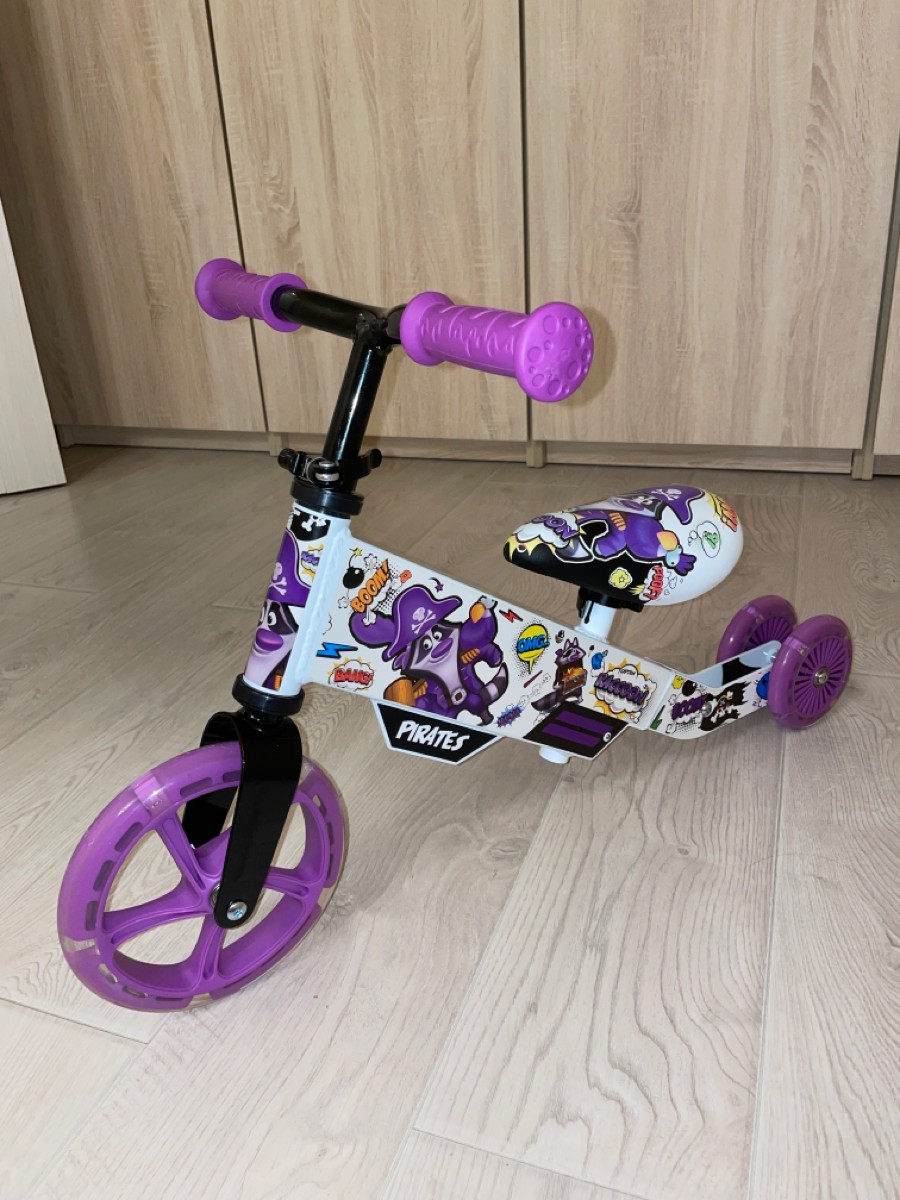 Алюминиевый беговел-трансформер для малышей со свет.колесами Small Rider Turbo Bike (Фиолетовый)