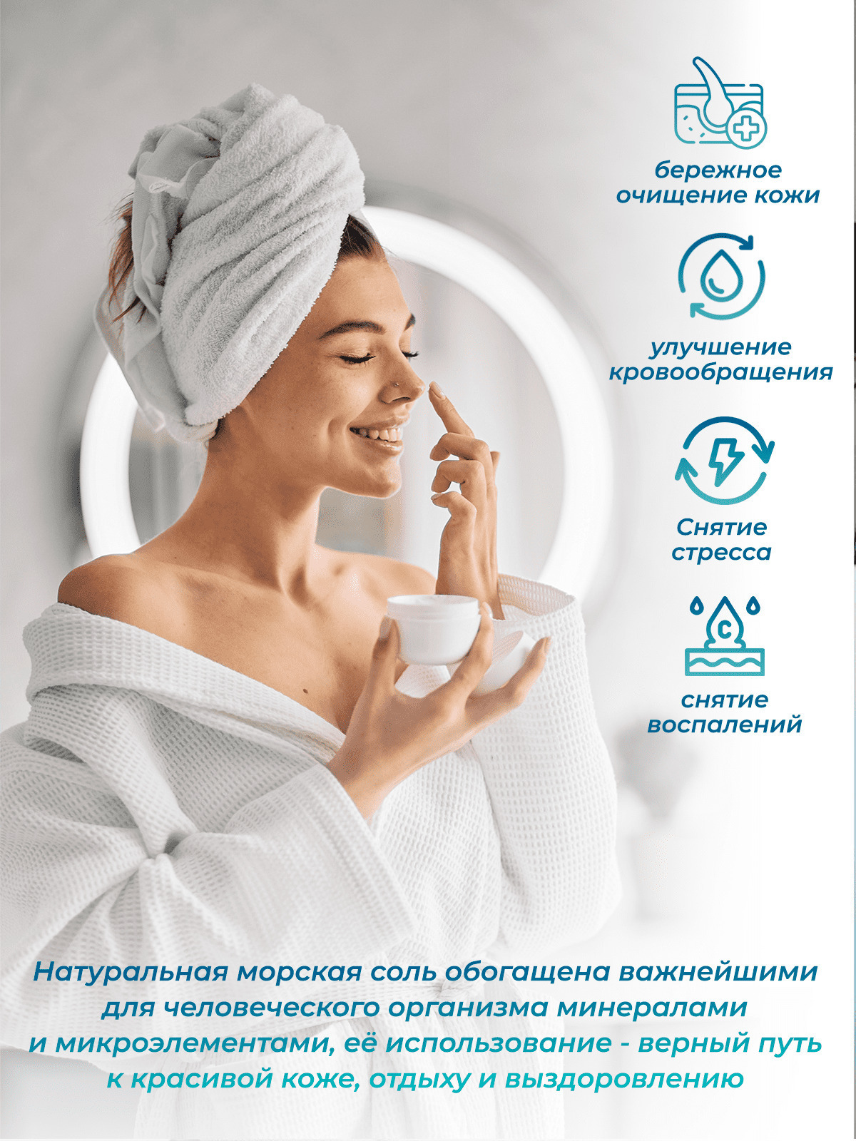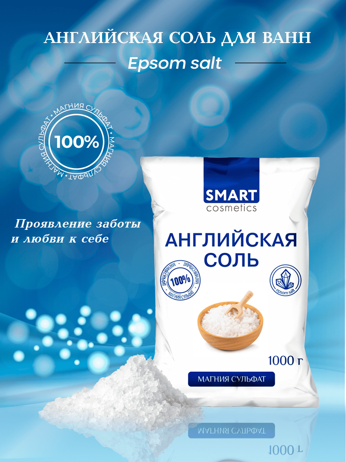 Бишофит/Магниевая соль для ванн, Smart Cosmetics, 1 кг/Соль антистресс/Омолаживающий эффект