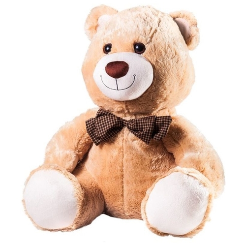 Мягкая игрушка СмолТойс Мишка бежевый с клетчатым бантиком 67 см