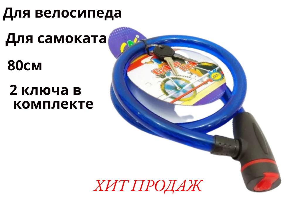 Замок велосипедный(для коляски и самоката) противоугонный тросовый, эконом, металл, ПВХ, пластик,