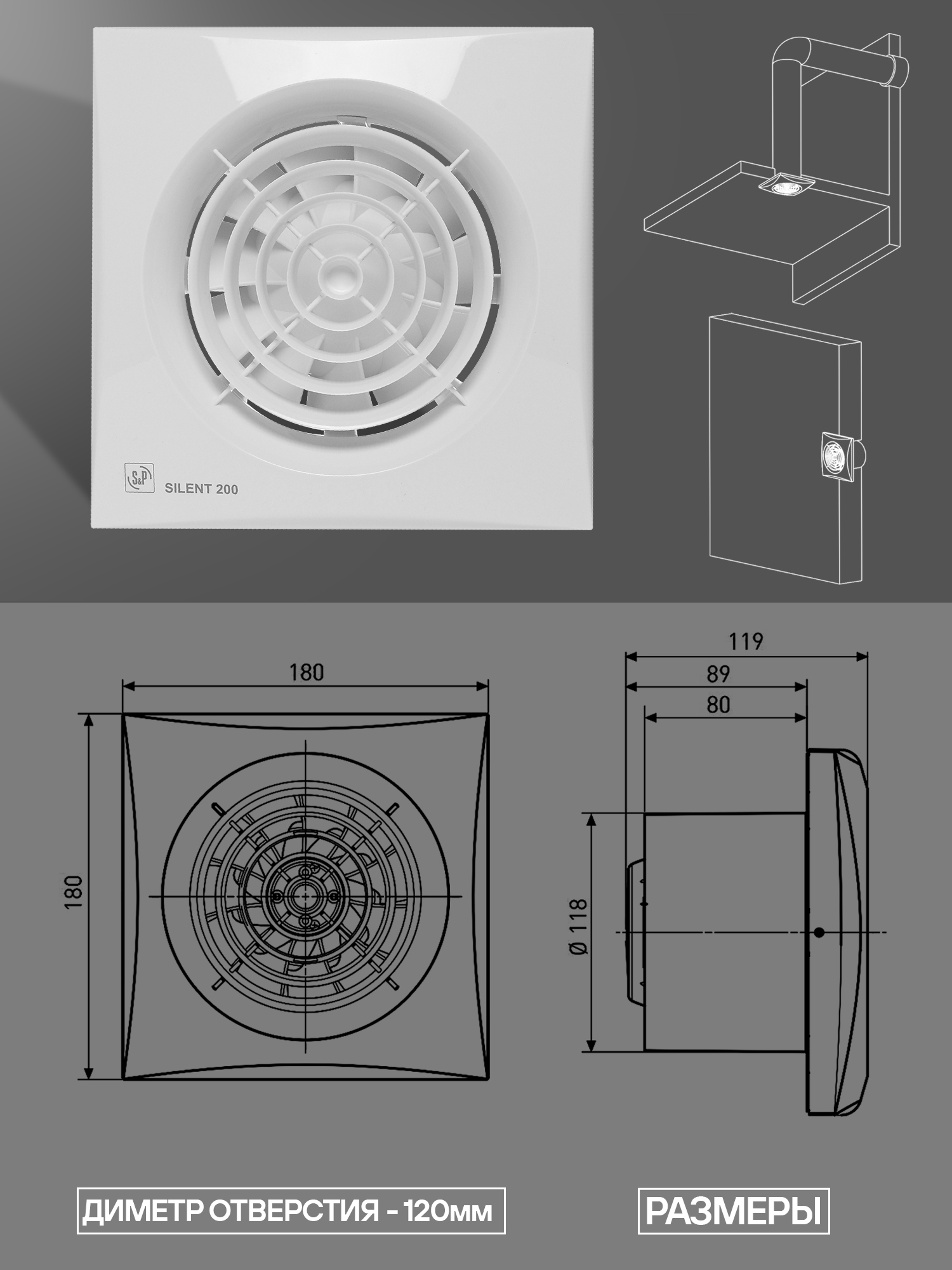 Вентилятор вытяжной Soler&Palau SILENT-200 CHZ, 120 мм, с датчиком влажности, ГАРАНТИЯ 5 ЛЕТ, белый