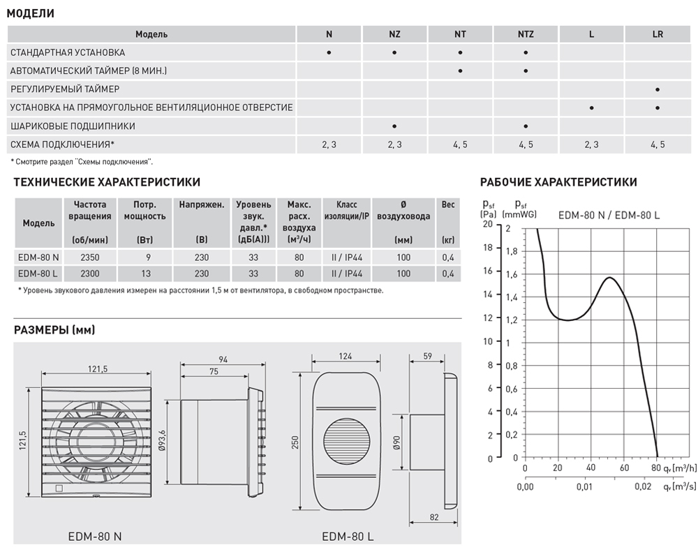 Вентилятор вытяжной 100 мм Soler & Palau EDM 80 N, 9 Вт, 80 м3/ч, 33 дБ, Испания
