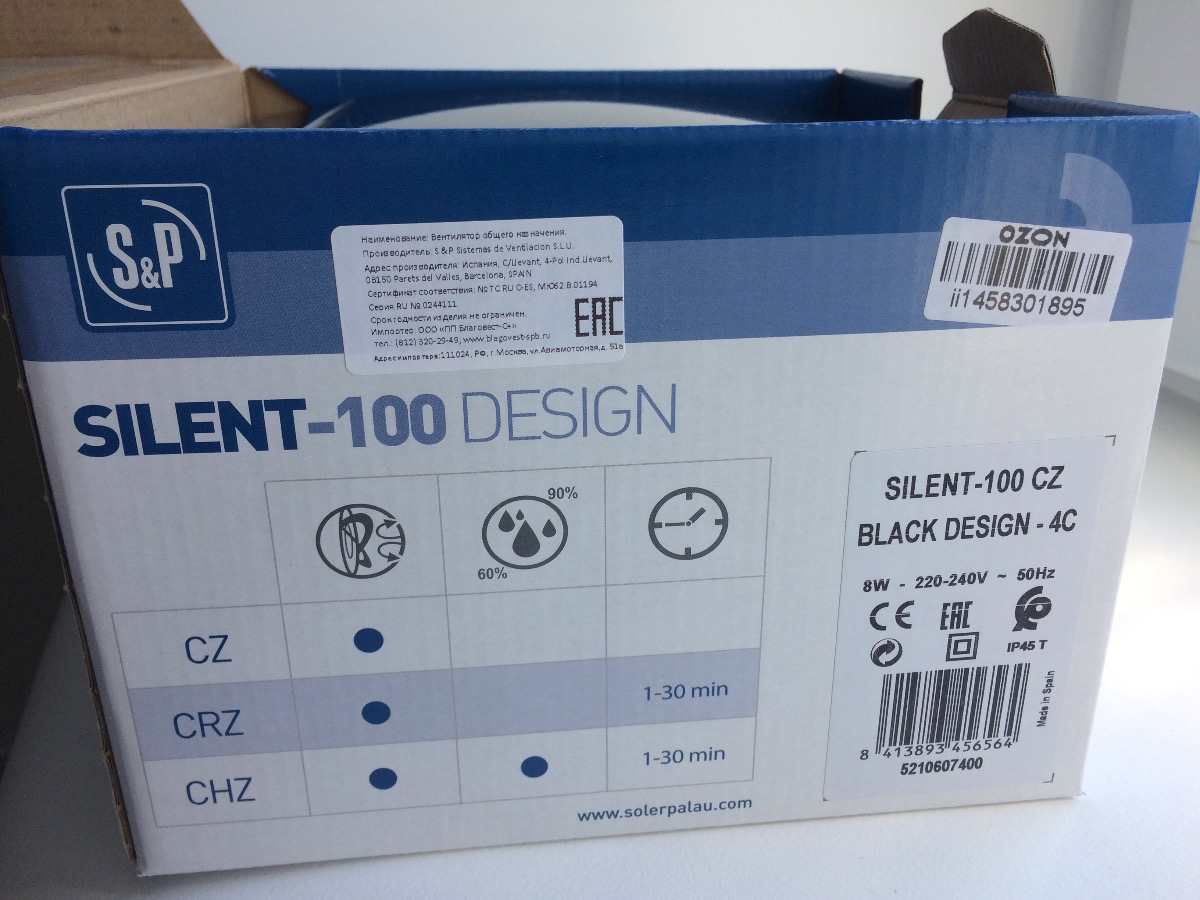 Вентилятор вытяжной Soler&Palau SILENT-100 CZ, 100 мм, белый, гарантия 5 лет