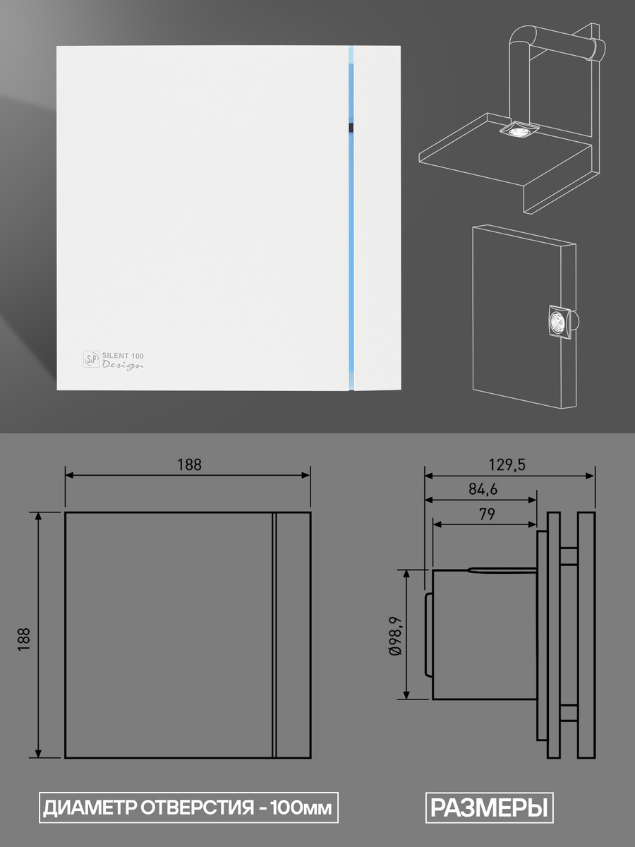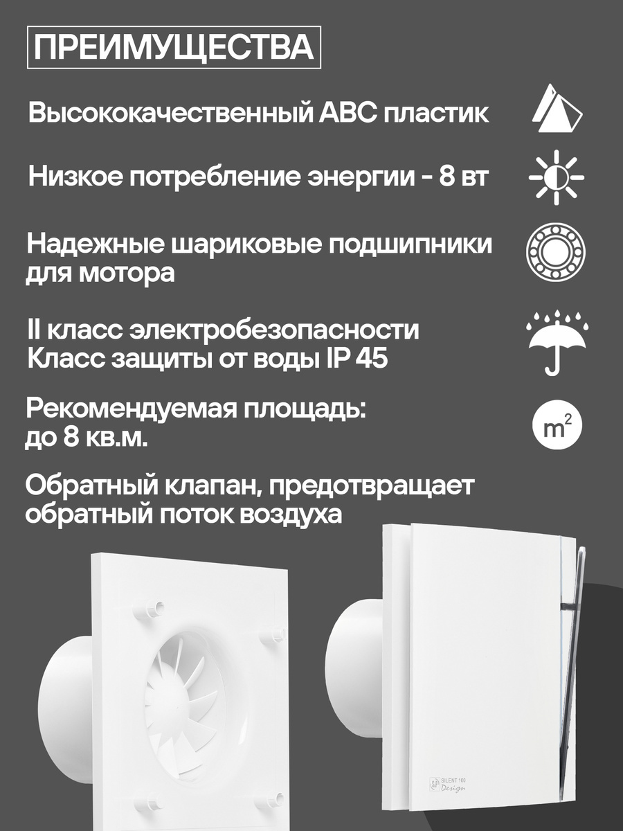 Вентилятор вытяжной Soler&Palau Silent-100 CHZ Silver Design датчик влажности