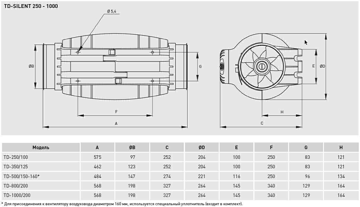 Канальный вентилятор Soler&Palau TD-500/150-160 SILENT T 3V