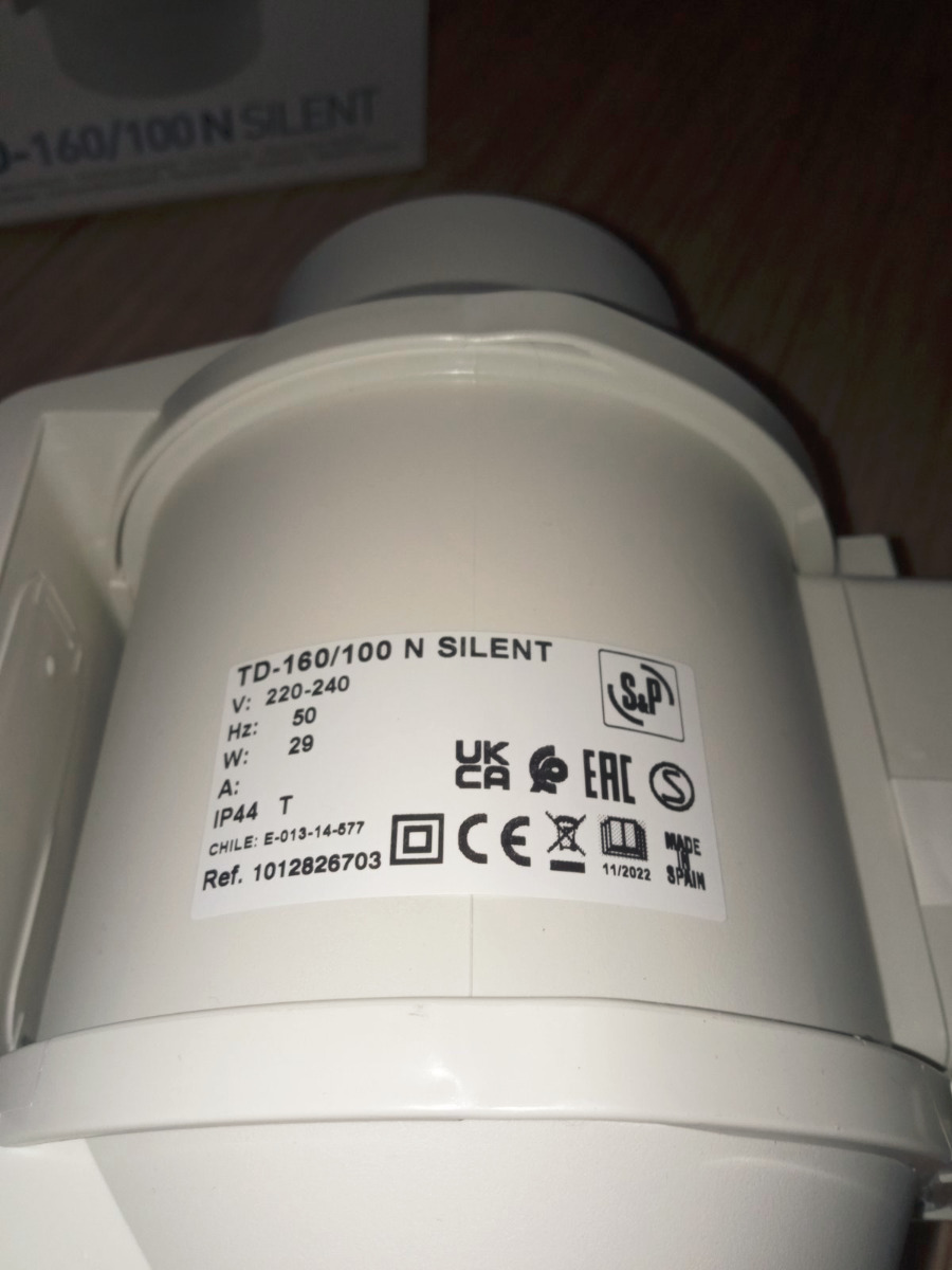 Вентилятор вытяжной канальный Soler&Palau TD-160/100 N SILENT, 100 мм, малошумный