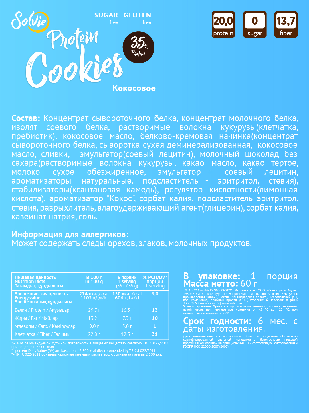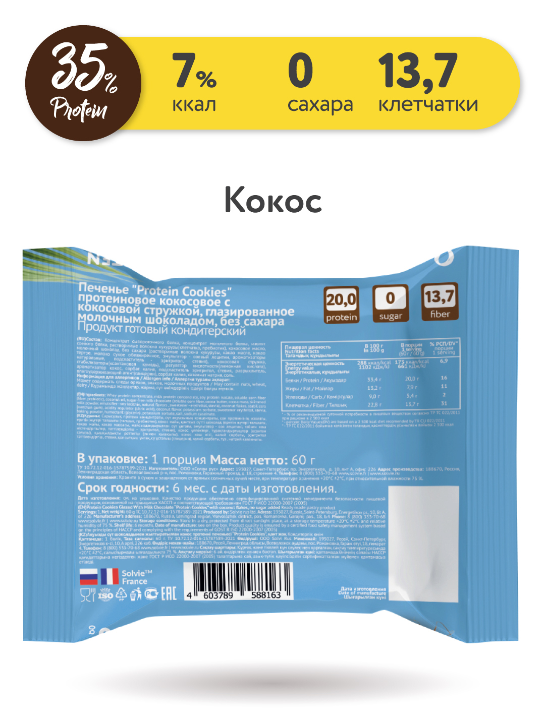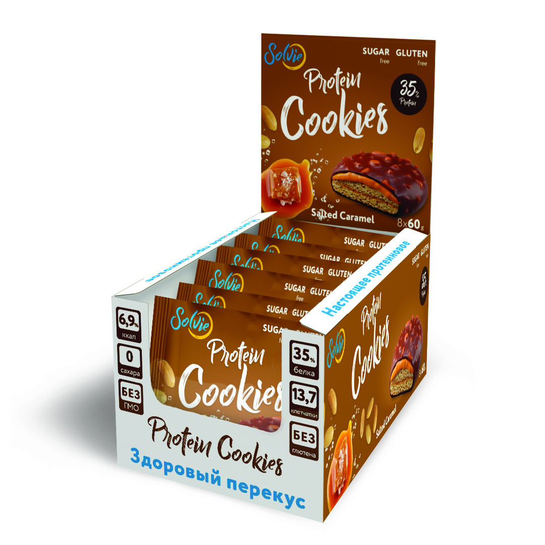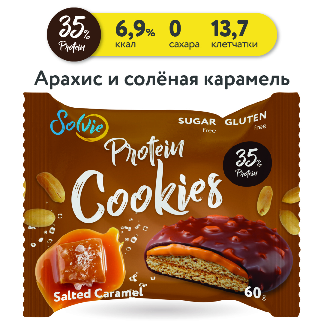 Solvie / Протеиновое печенье/35% белка/без сахара/ арахис соленая карамель
