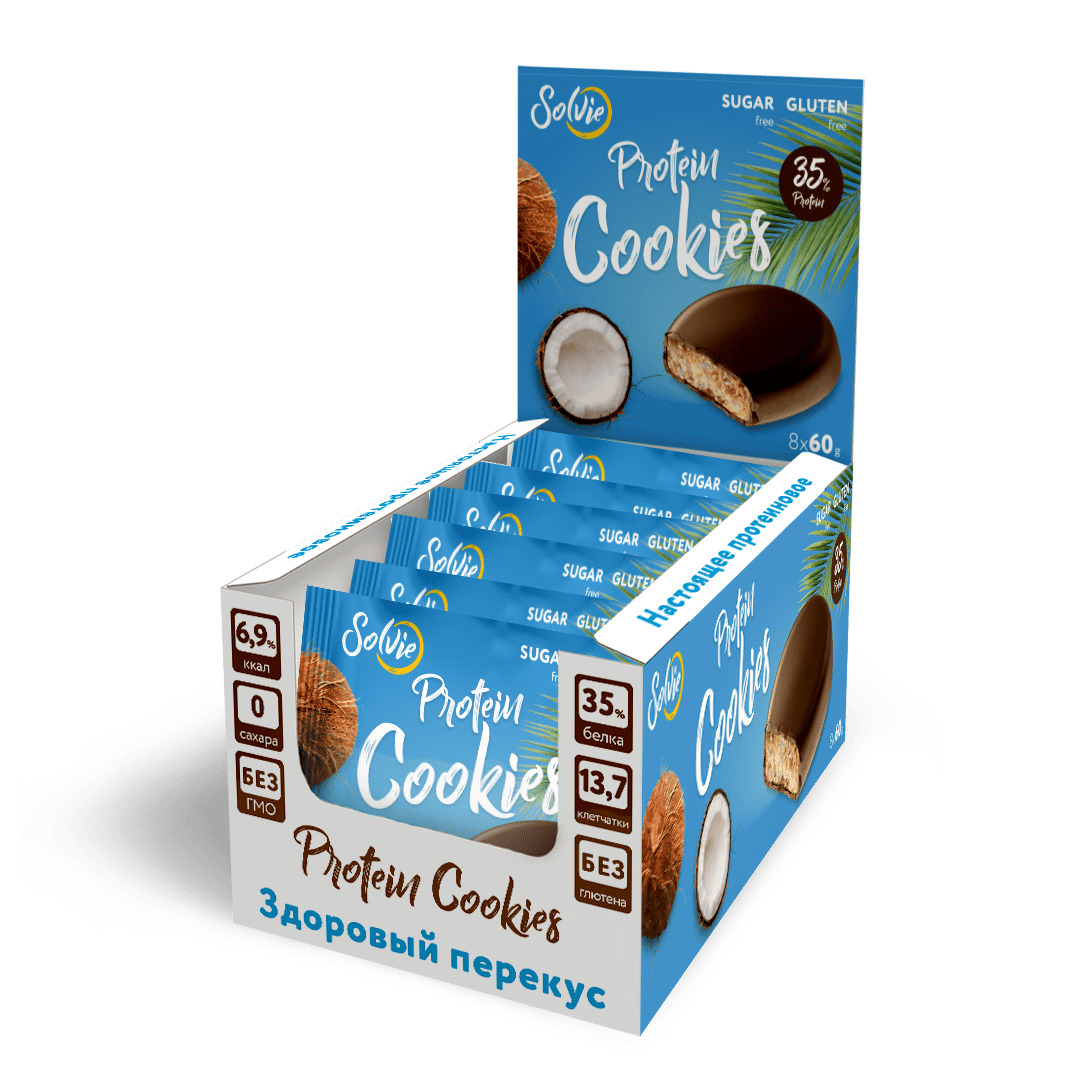 Протеиновое печенье/35% белка/Кокос/спортивное печенье/ низкокалорийное/без сахара