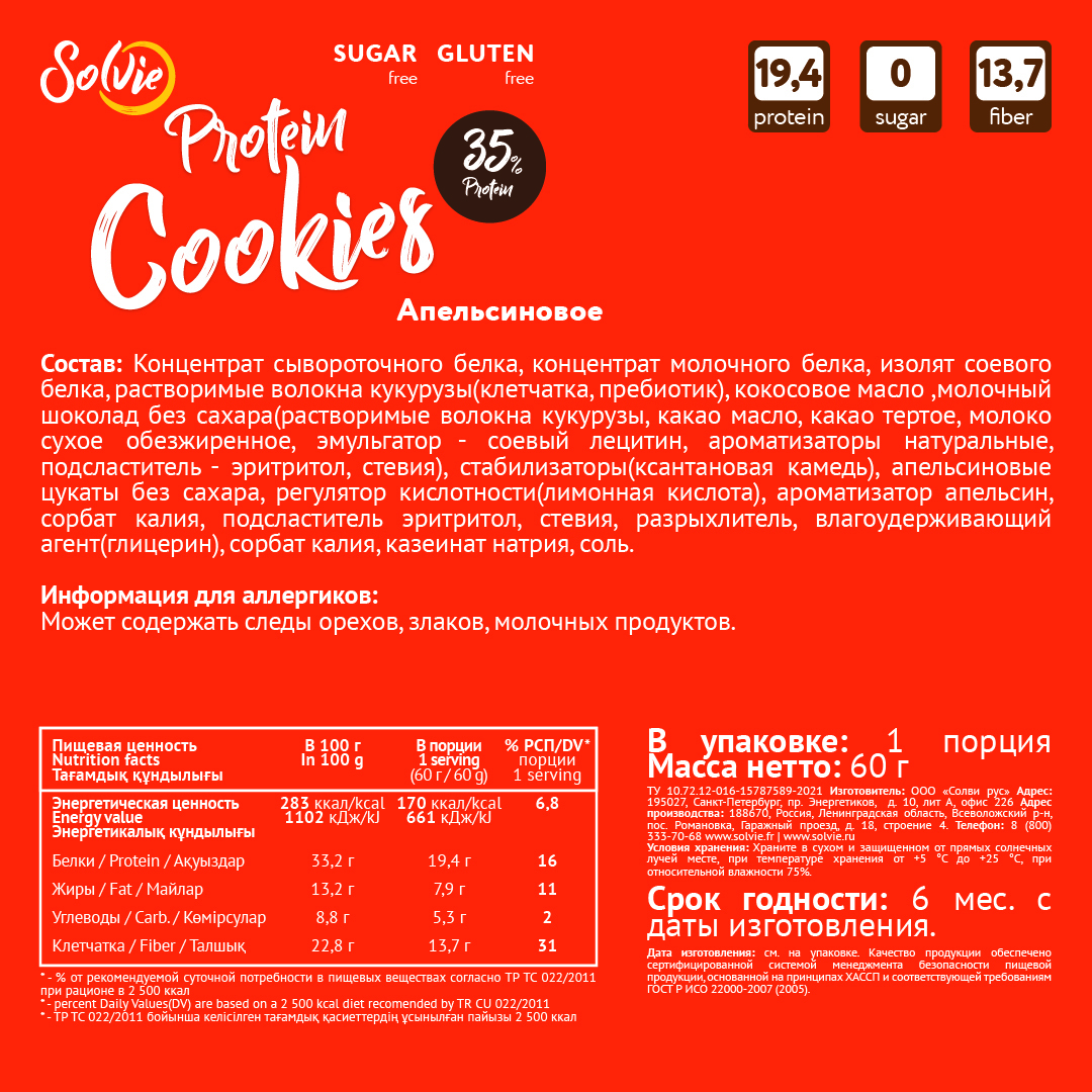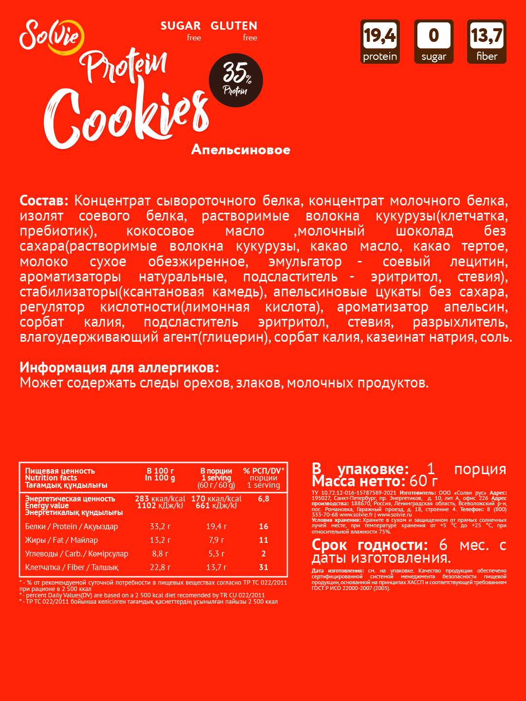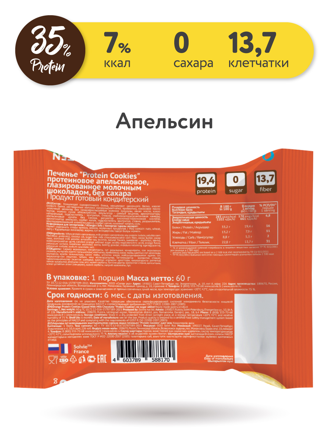 Протеиновое печенье/35% белка/Апельсин/спортивное печенье/ низкокалорийное/без сахара