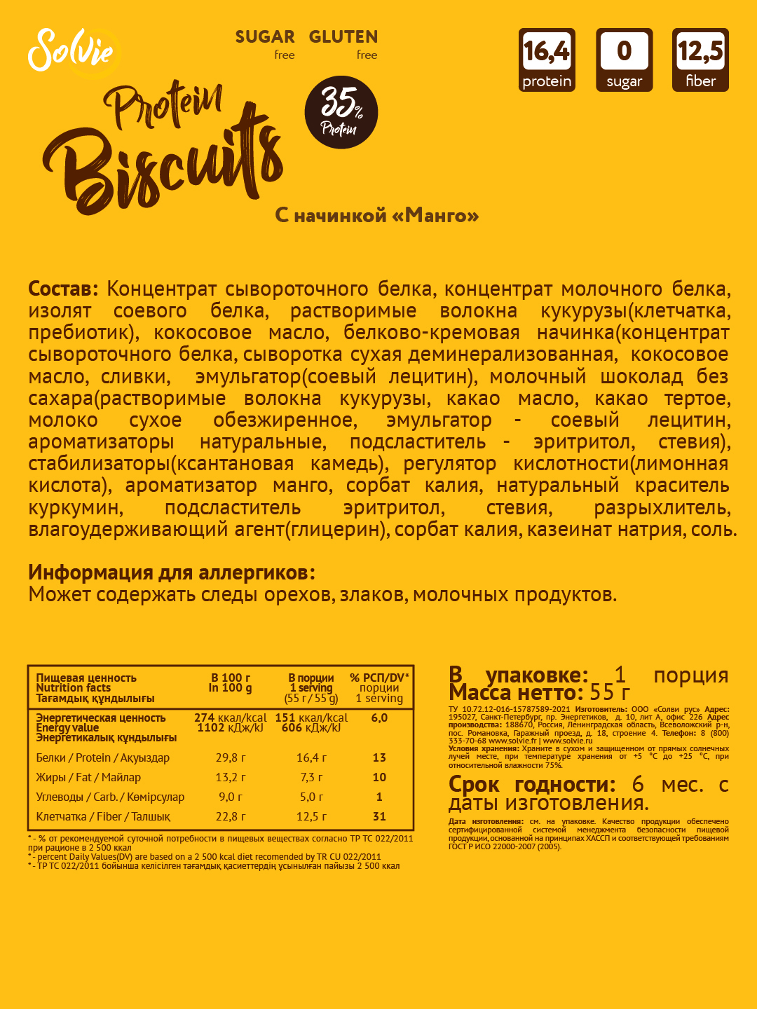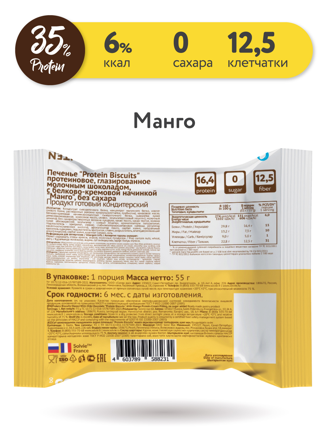 Протеиновое печенье/Бисквит/35% белка/Манго/без сахара/низкокалорийное/спортивное печенье