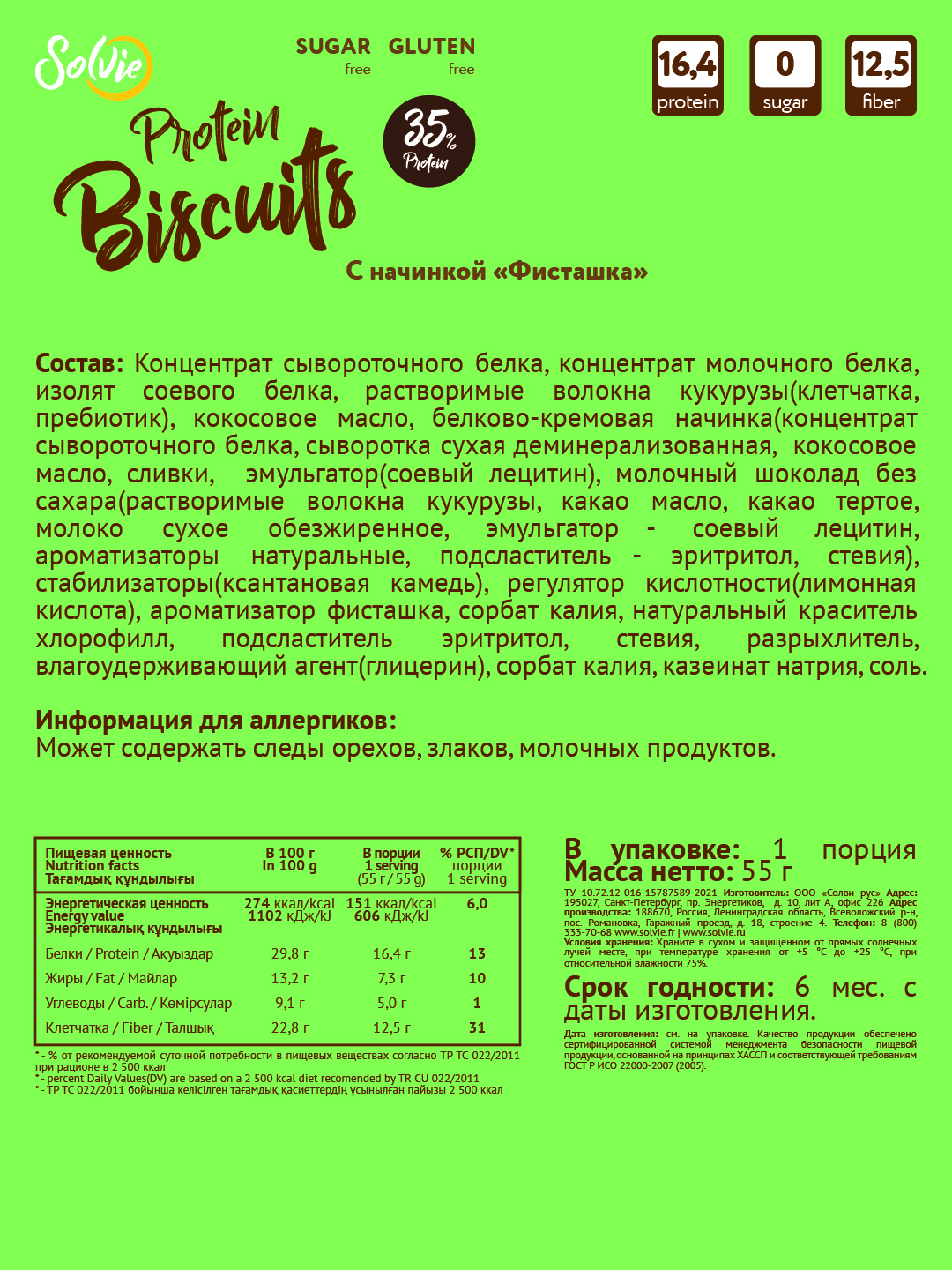 Протеиновое печенье/Бисквит/35% белка/Фисташка/без сахара/низкокалорийное/спортивное печенье