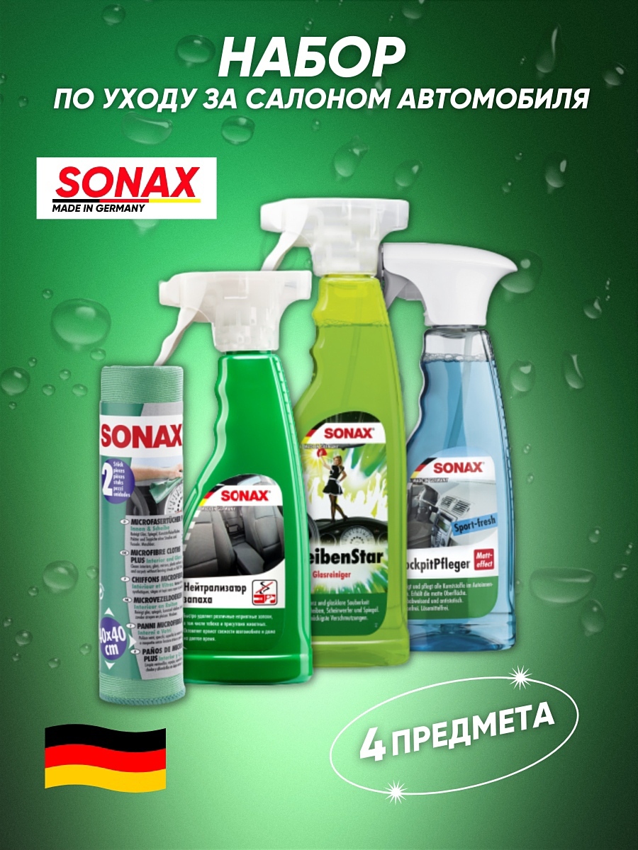 Очиститель салона, очиститель стекол, нейтрализатор запаха, Набор для ухода за салоном авто Sonax
