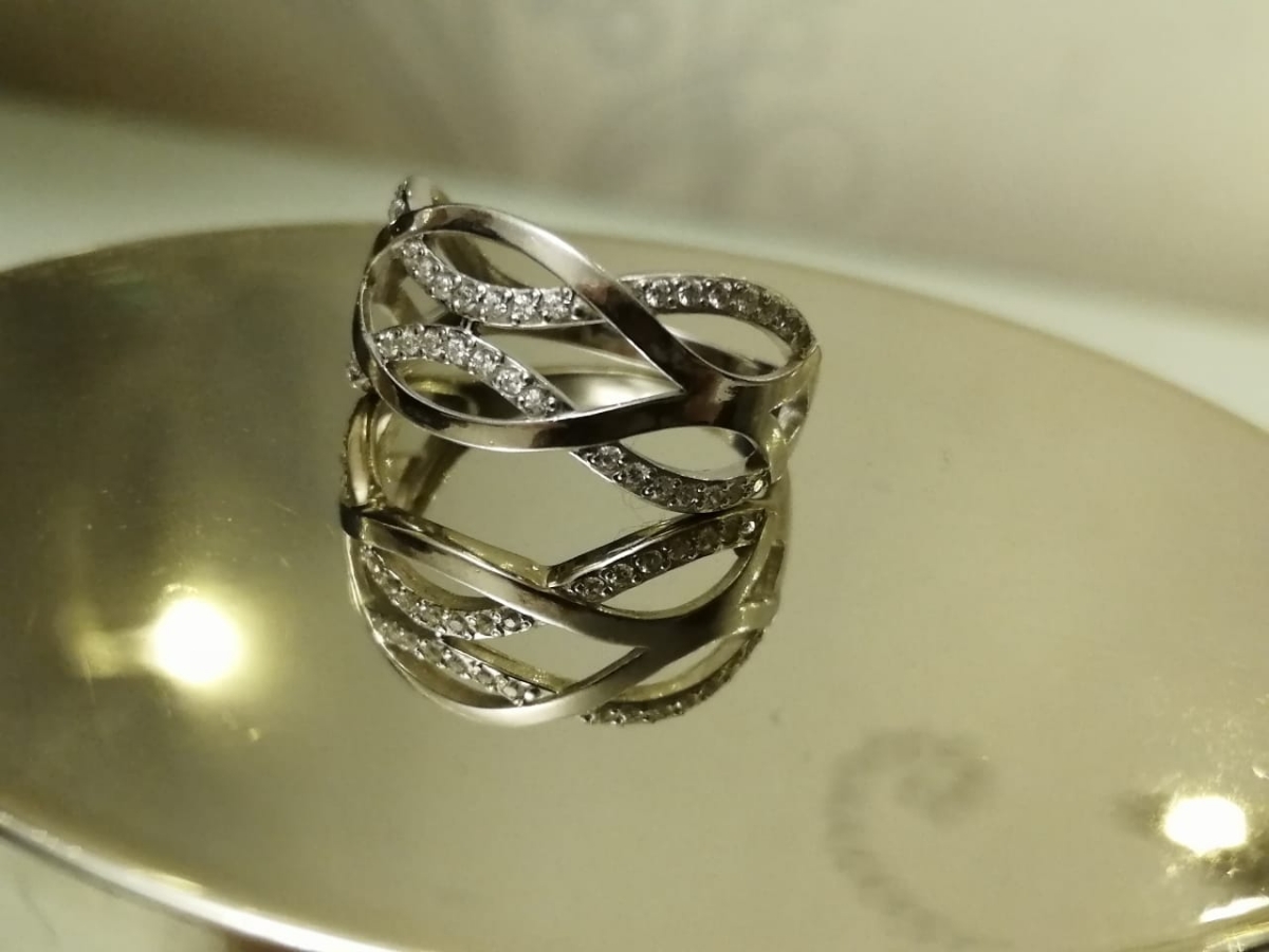 Сорокин Кольцо серебро 925 родированное с фианитами белого цвета